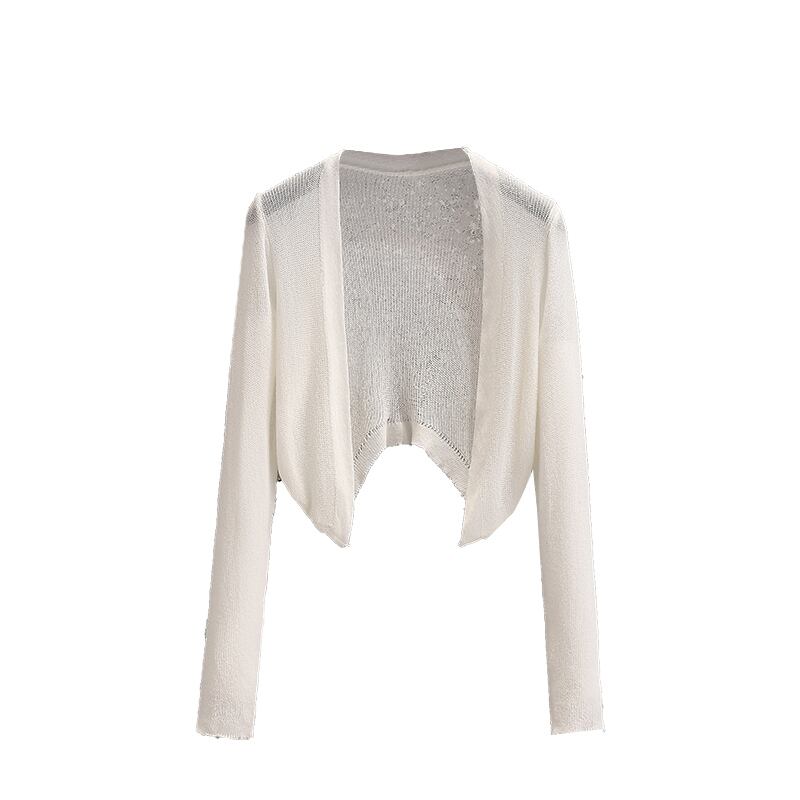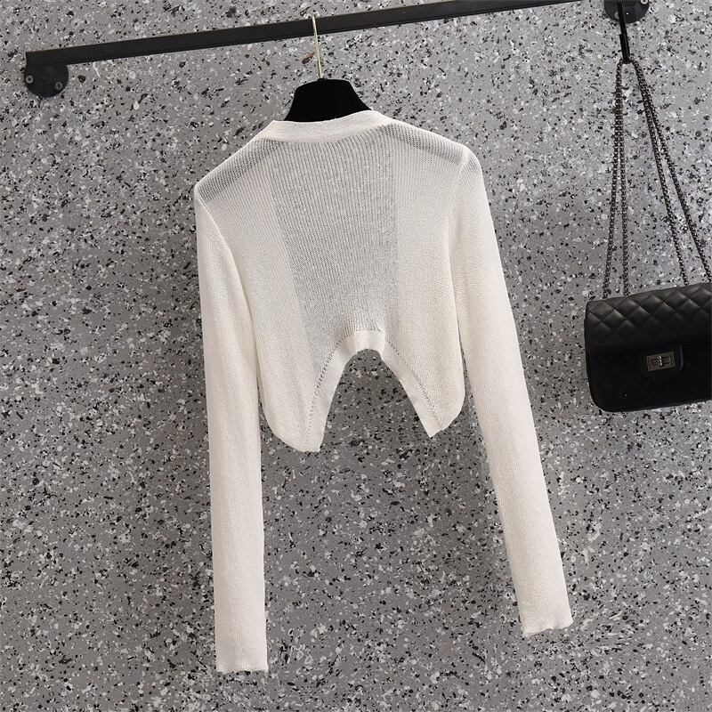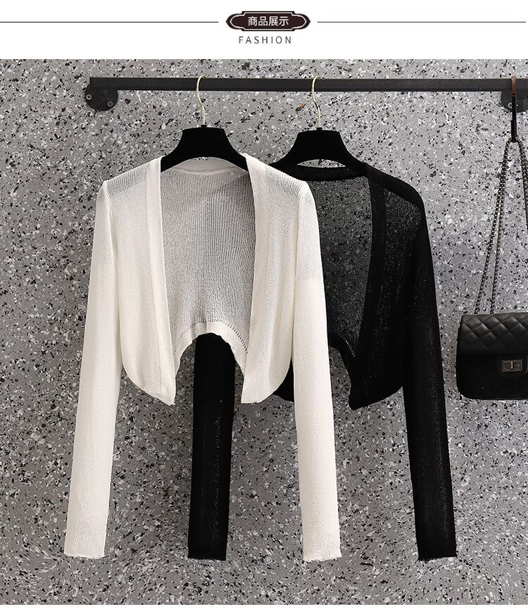 プラスサイズの婦人服 2023 ファットシスター夏新弾性日焼け止めニットカーディガンライト空調シャツショートコート エラスティック 伸縮 大きめサイズ サマー 夏物 8884167448606788