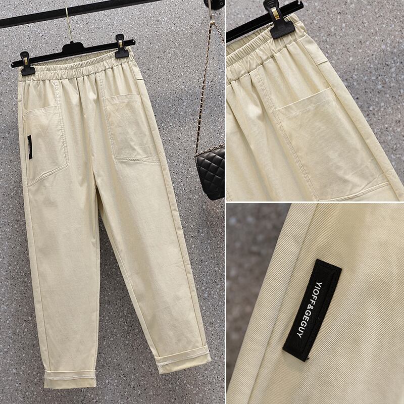 プラスサイズの婦人服2023春服ファットシスターズの新しいワイドで用途の広いルーズで薄いカジュアルな伸縮性のあるウエストゴムハーレムパンツ エラスティック 大きめサイズ スプリング 春物 8884172745400191