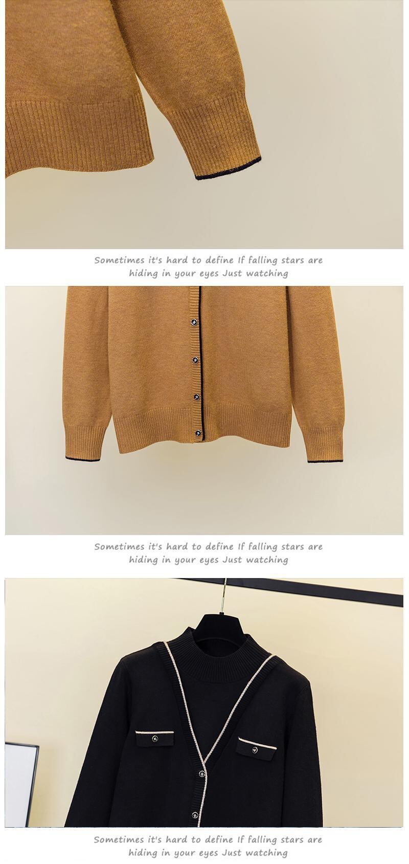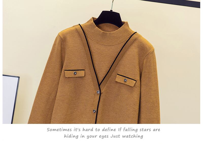 プラスサイズの婦人服 2023 春の新しいファットシスター長袖カジュアルハーフハイカラーステッチフェイクツーピースデザインセーター ロング 大きめサイズ スプリング 春物 888419742099140