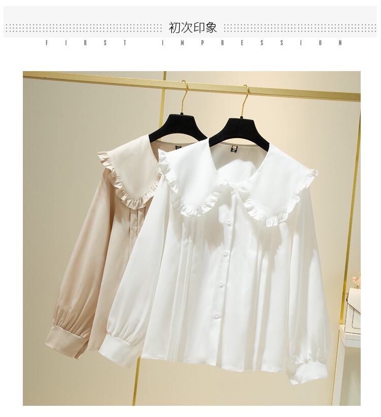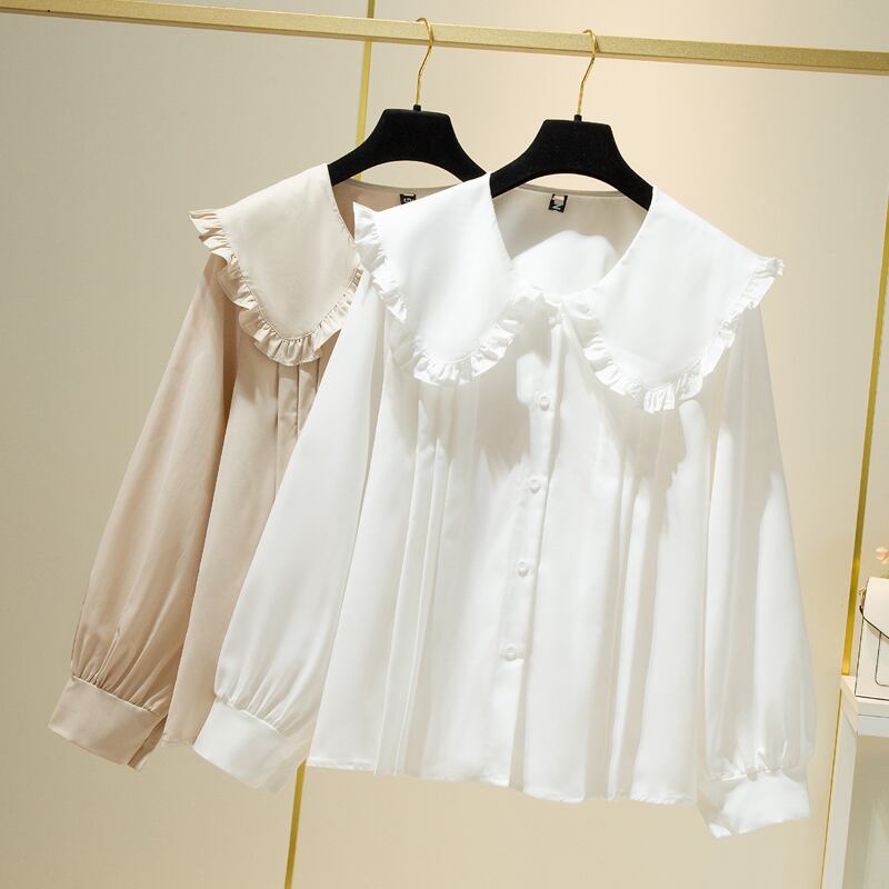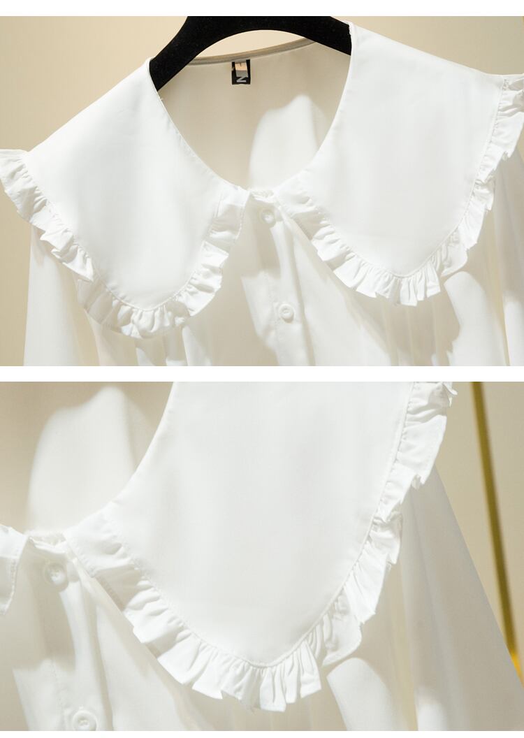 プラスサイズの婦人服 2023 春服ファットシスターズ新ファッションシャツフリル長袖ボトムスシャツスリムトップス ロング 大きめサイズ スプリング 春物 8884151481968203