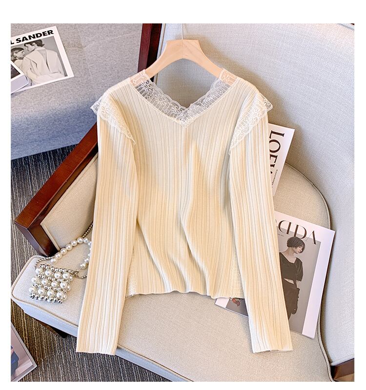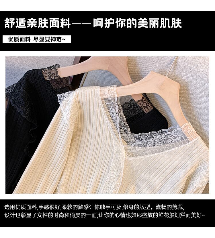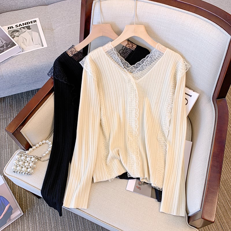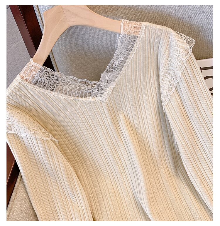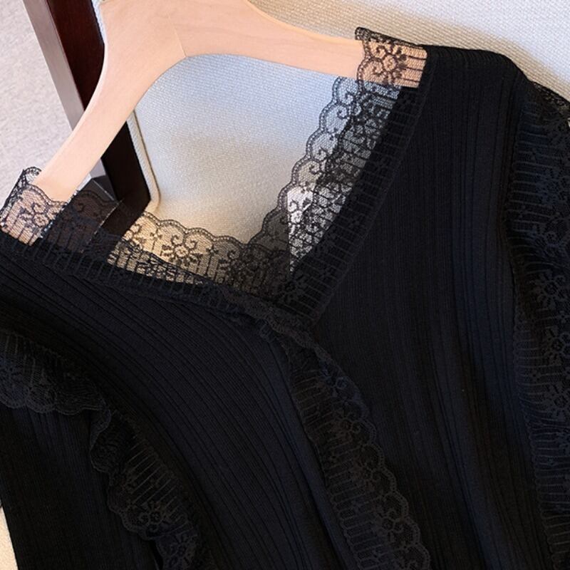 プラスサイズの婦人服 2023 春の新しいファット シスター カジュアル フレンチ レース ステッチ ニッチ シックな肉を覆うセーター 大きめサイズ スプリング 春物 8884172261644026