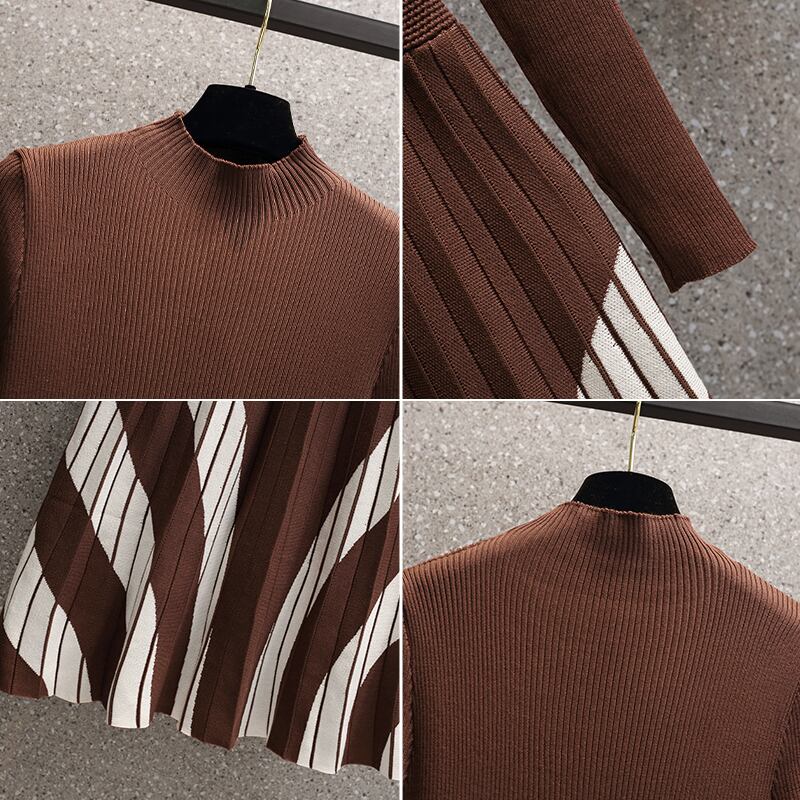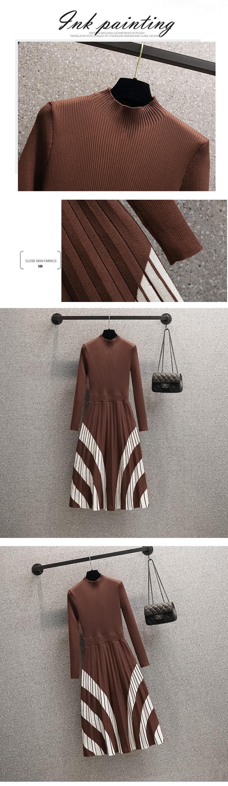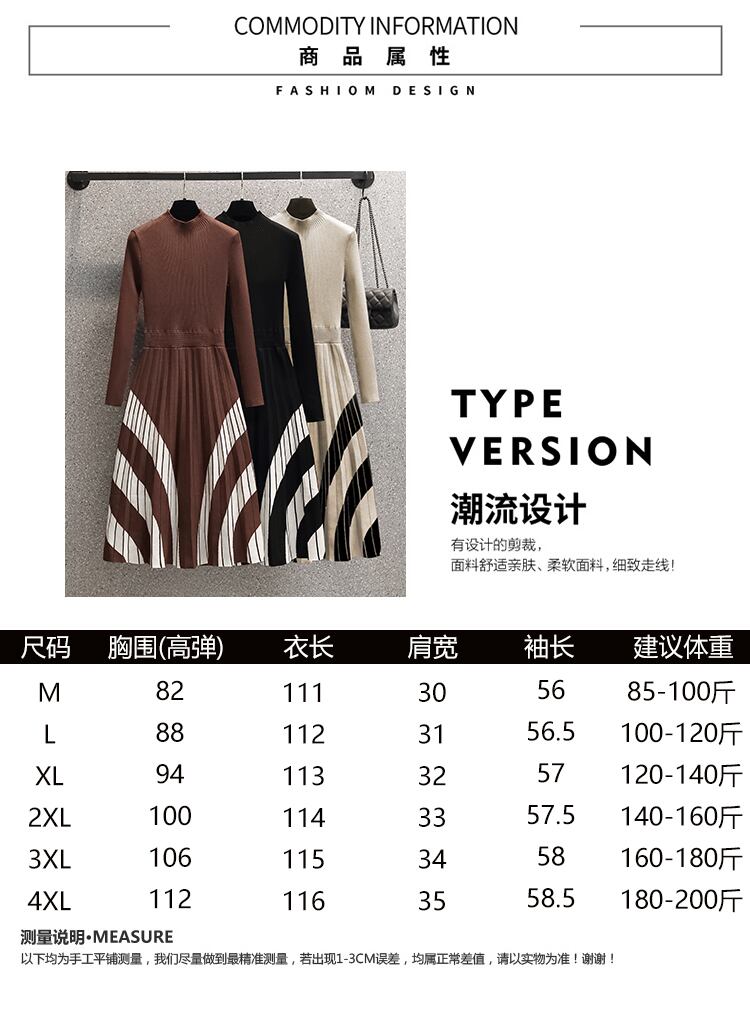 軽くて馴染みのあるスタイルのハーフハイカラーでお腹を覆い、薄い女性の大きいサイズの服を見せます。太った妹は2023年春の新しいニットワンピースのトレンドです。 大きめサイズ スプリング 春物 8884122099749801