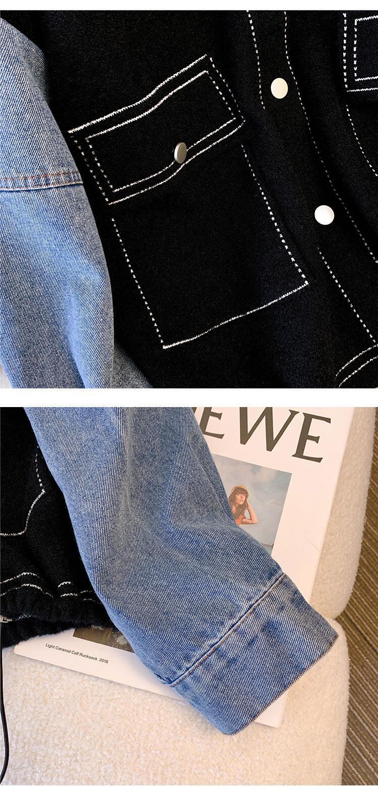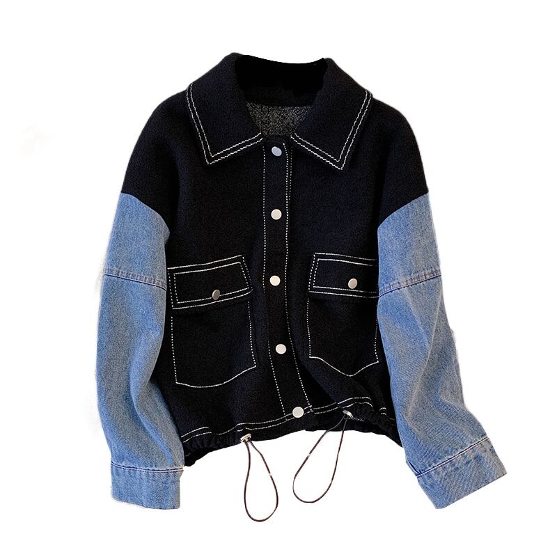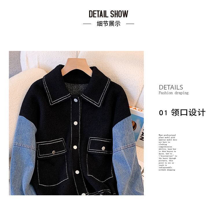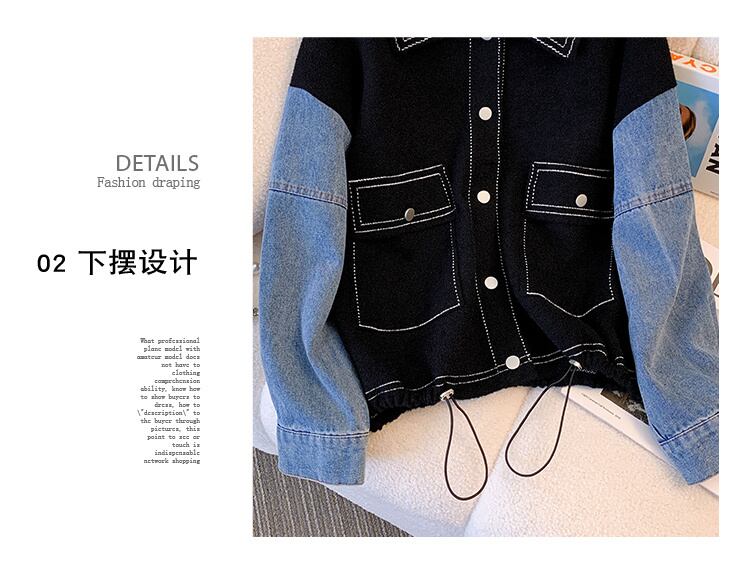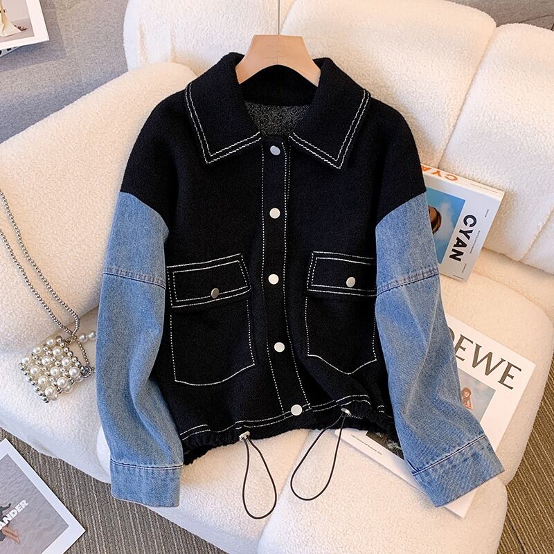 大きいサイズの婦人服 2023 トレンディな女性の春の新しいファット シスター eign スタイル緩いオールマッチ スリム デニム ステッチ ニット ジャケット 大きめサイズ スプリング 春物 8884143220608492