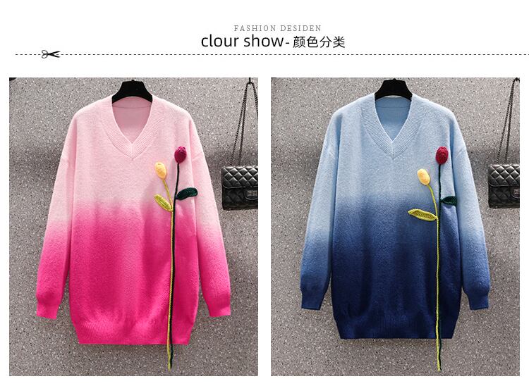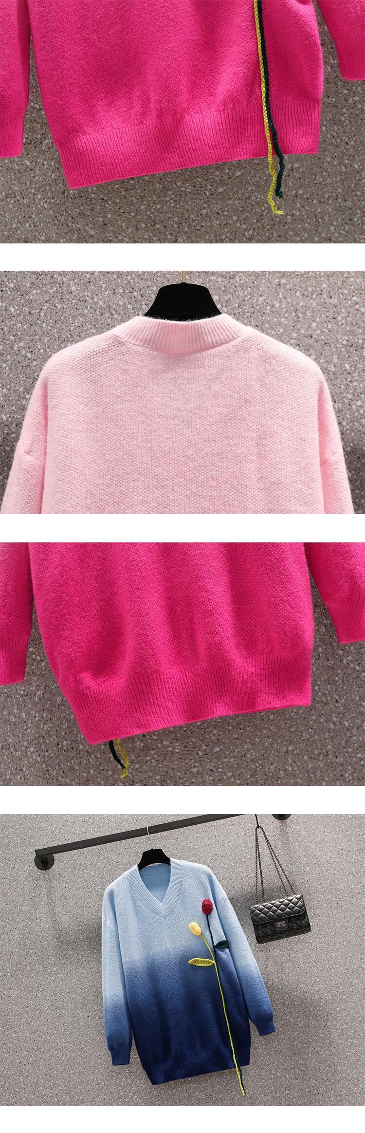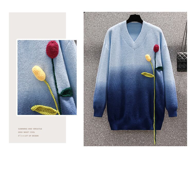 プラスサイズの婦人服 2023 ファットシスター春の新 v ネックセーターフラワールーズスリム怠惰なスタイルのセーター 大きめサイズ スプリング 春物 Vネック フラワーデザイン 8884169063135198