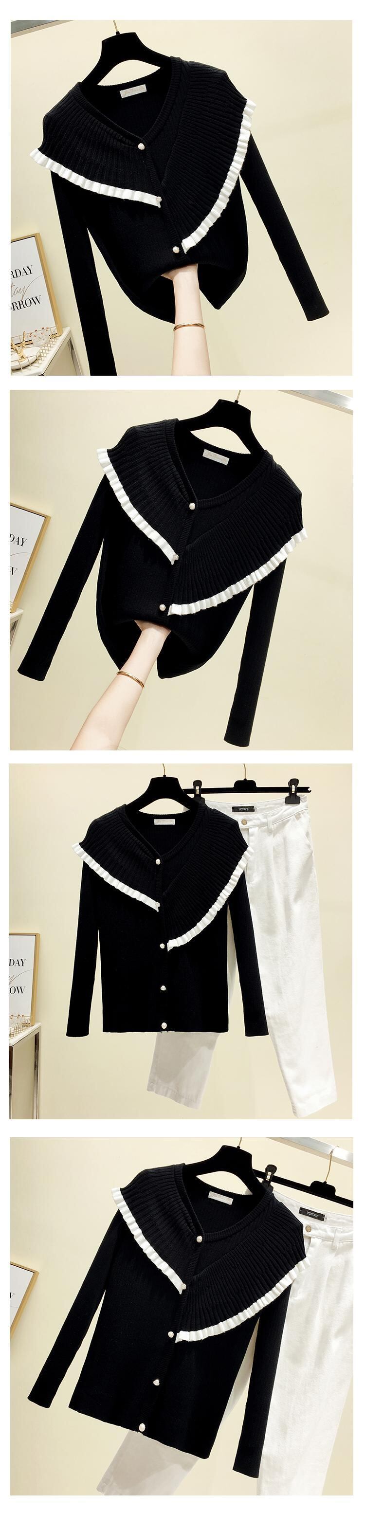 プラスサイズの婦人服 2023 脂肪姉妹春の新ファッションフリル V ネックスリムニット底入れシャツ女性 大きめサイズ スプリング 春物 Vネック 8884113416548314