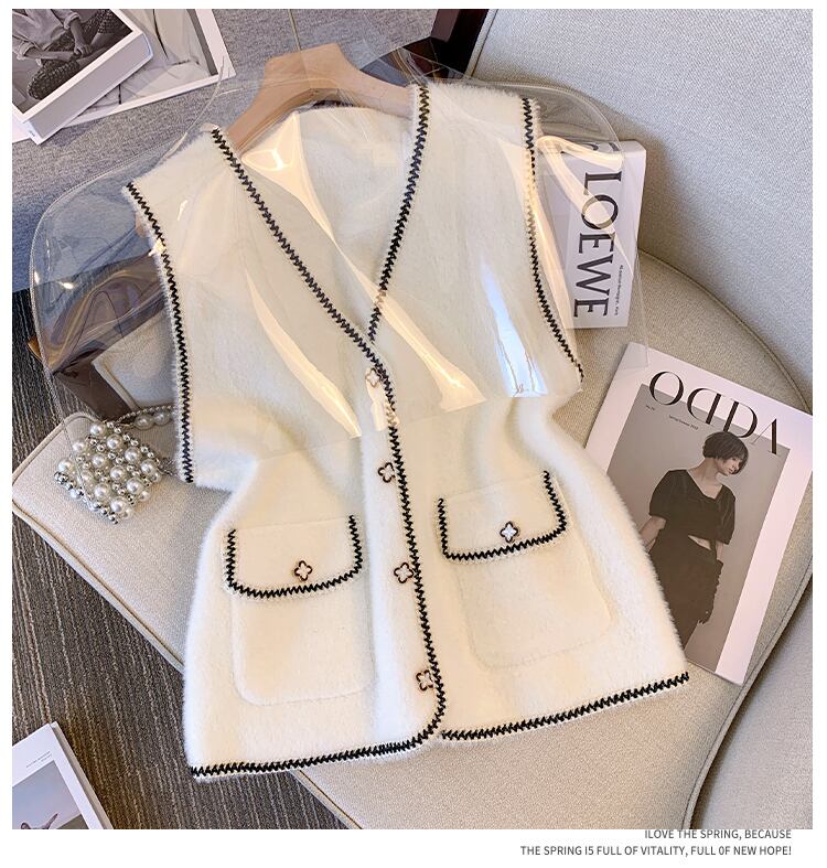 プラスサイズの婦人服 2023 ファットシスター春の新オールマッチベストベストショルダーベストコートベストベストニットカーディガン女性 大きめサイズ スプリング 春物 8884182709492027