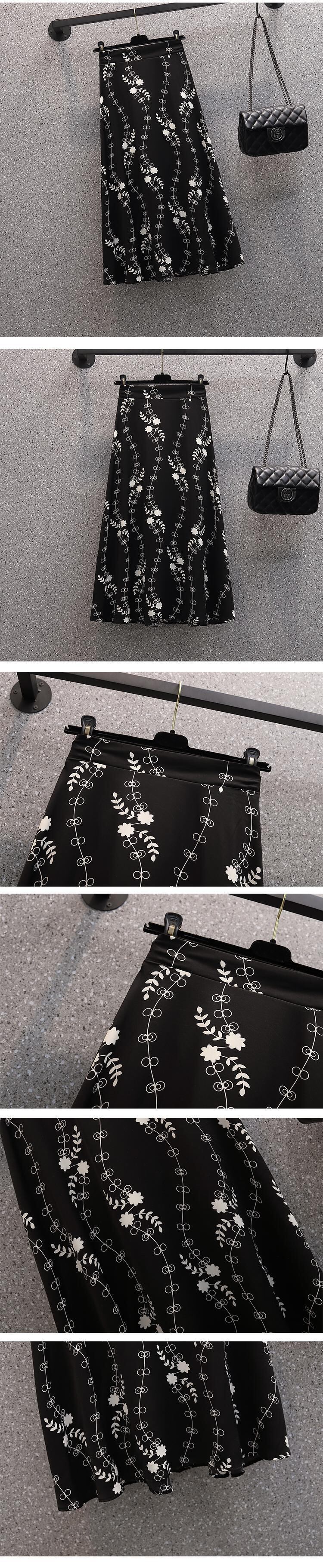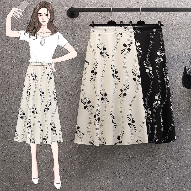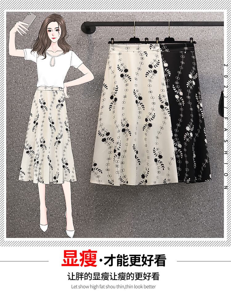 大きいサイズの婦人服2023春服ファットシスターズの新しいレトロな花柄の大きなスイングハイウエストとスリムなミドル丈のスカート ハイウェスト 大きめサイズ スプリング 春物 8884187141293282