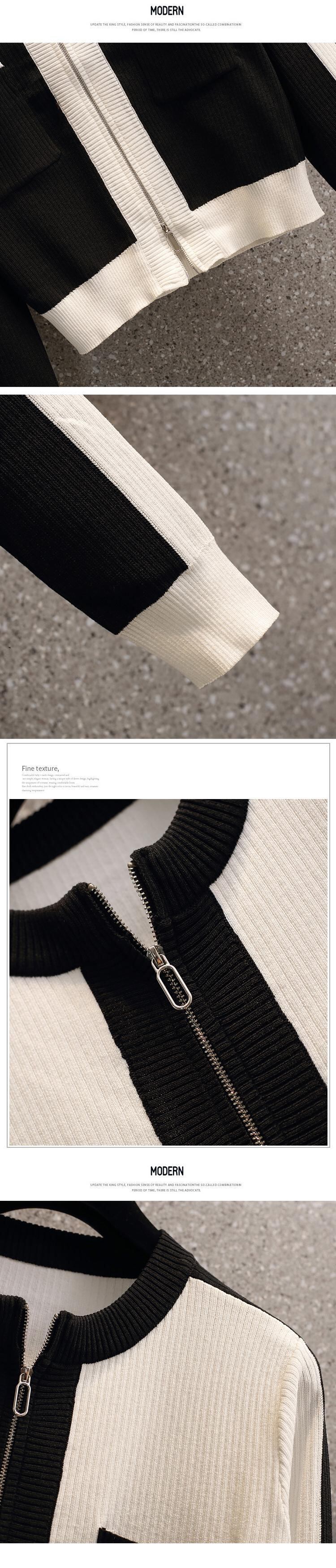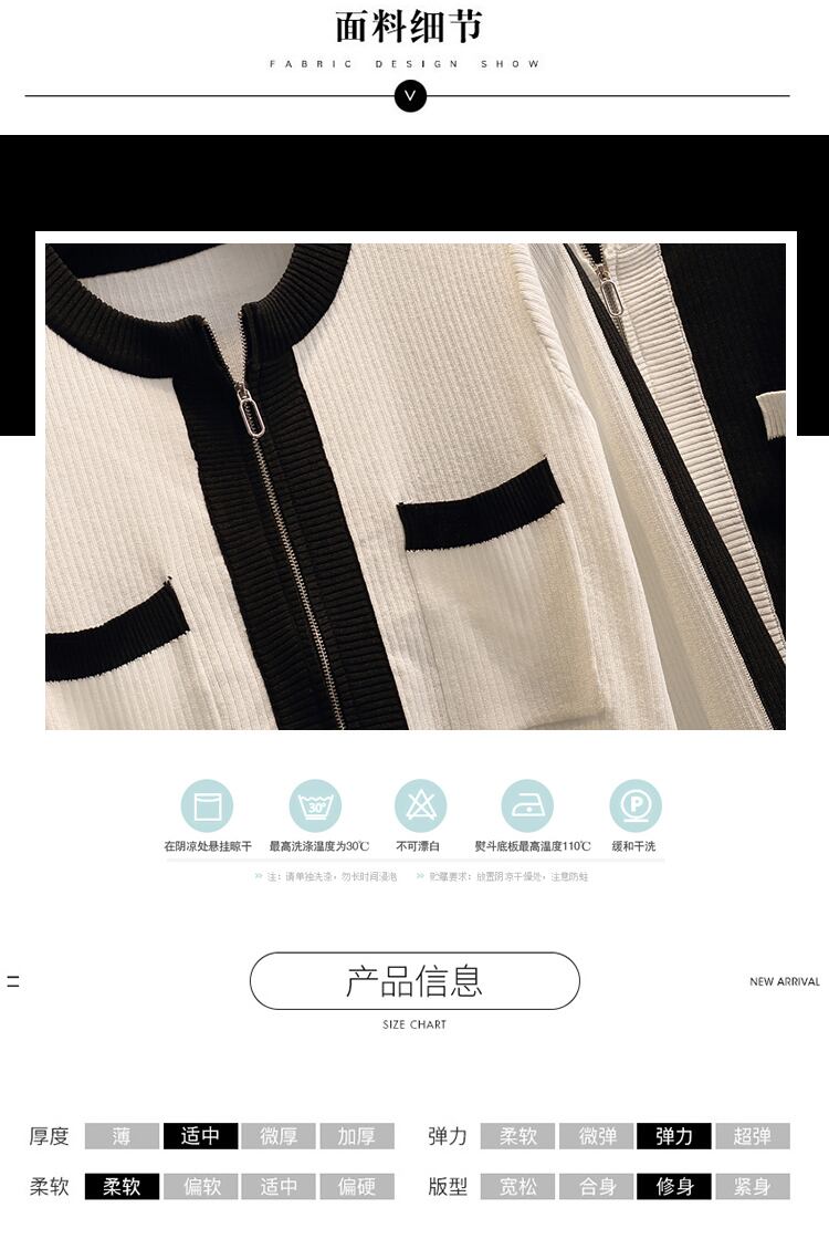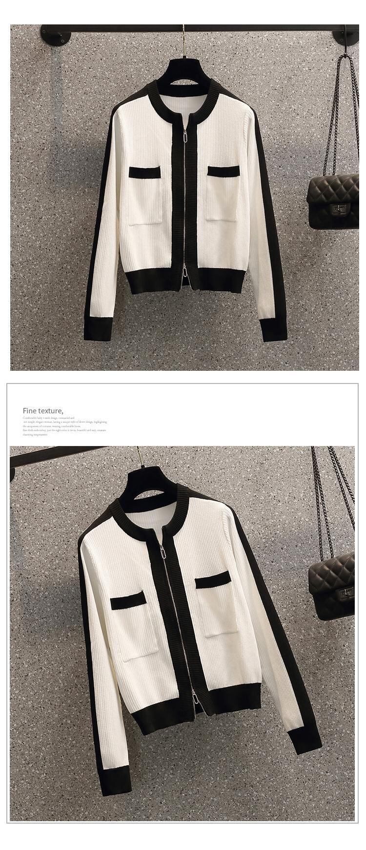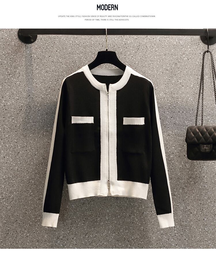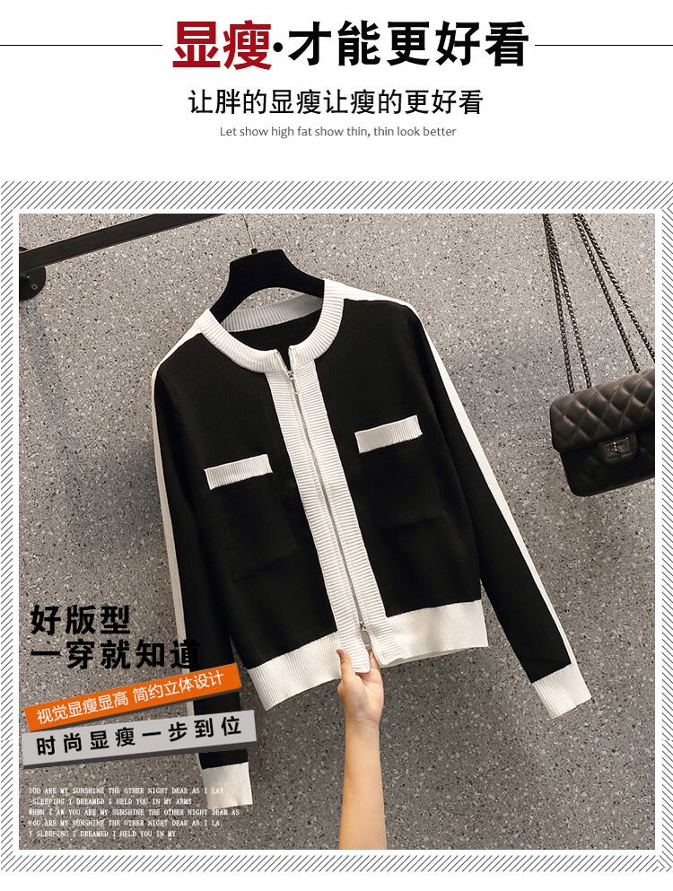 プラスサイズの婦人服 2023 春の新しいスタイルのファットシスターファッションコントラストカラーデザインセンスカーディガンジッパーカバー肉ニットジャケット 大きめサイズ スプリング 春物 8884134612957485