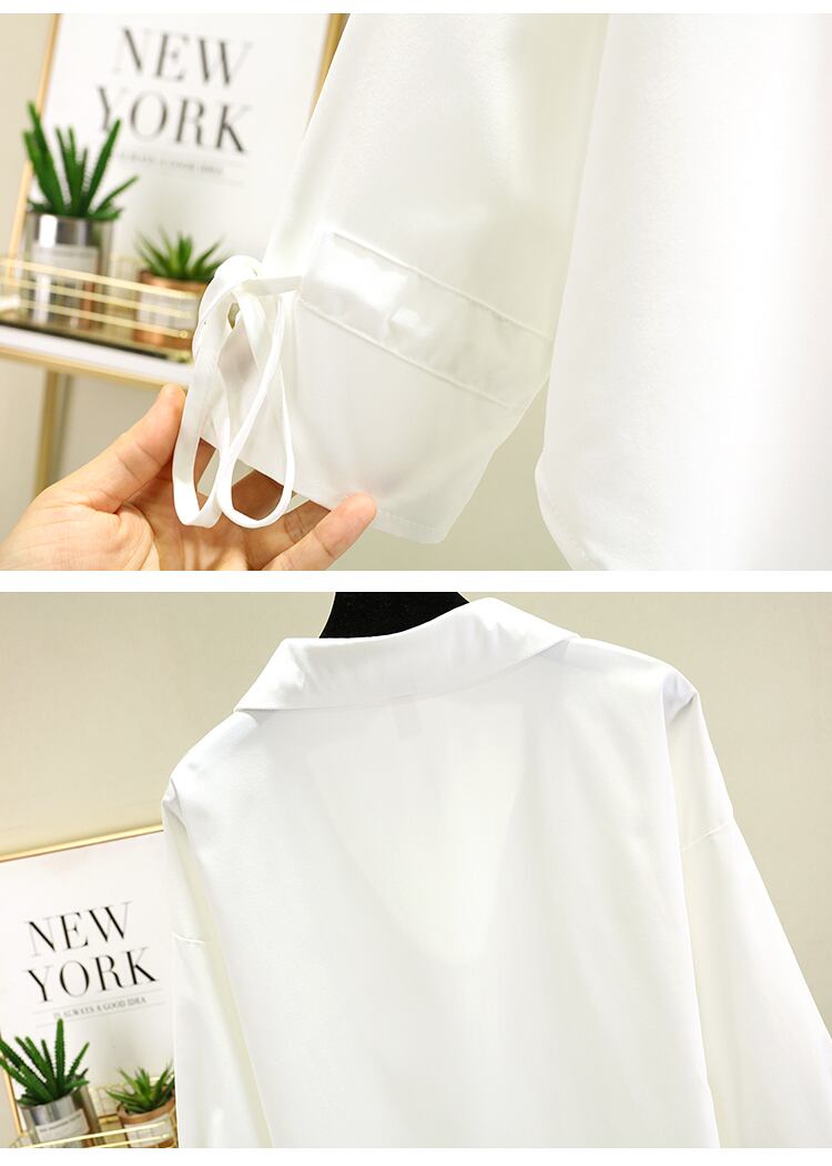 プラスサイズ レディース ゆったり 薄手 デザイン トップス 2023年春 新作 肉厚ラペル 長袖 無地 シャツ ロング 大きめサイズ スプリング 春物 ソリッドカラー 8884194447145153