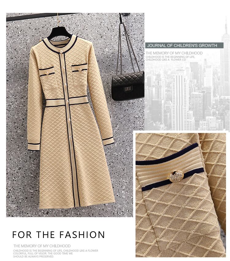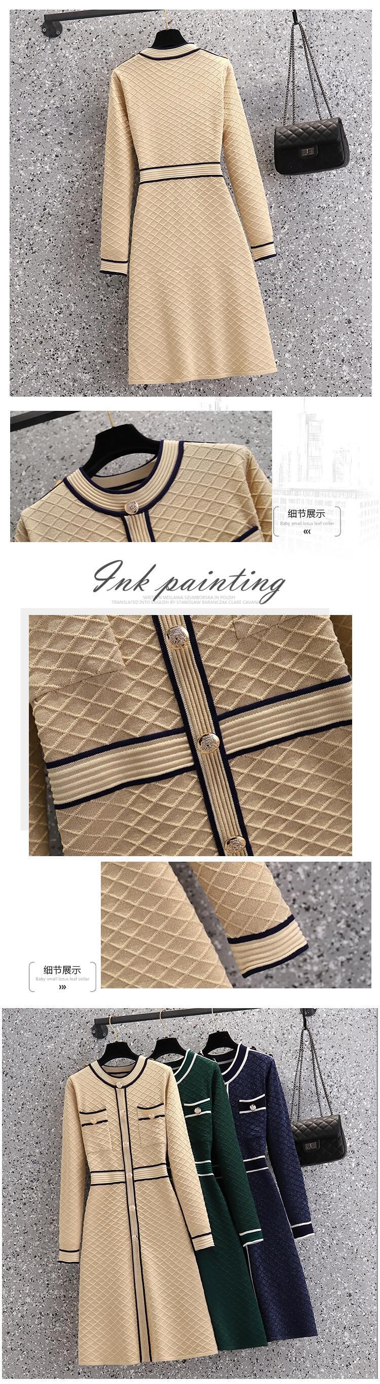 プラスサイズの婦人服 2023 トレンディな女性の春の新しい脂肪姉妹フレンチ気質ブレストボタンウエスト痩身ニットドレストレンディ 大きめサイズ スプリング 春物 8884187543551295