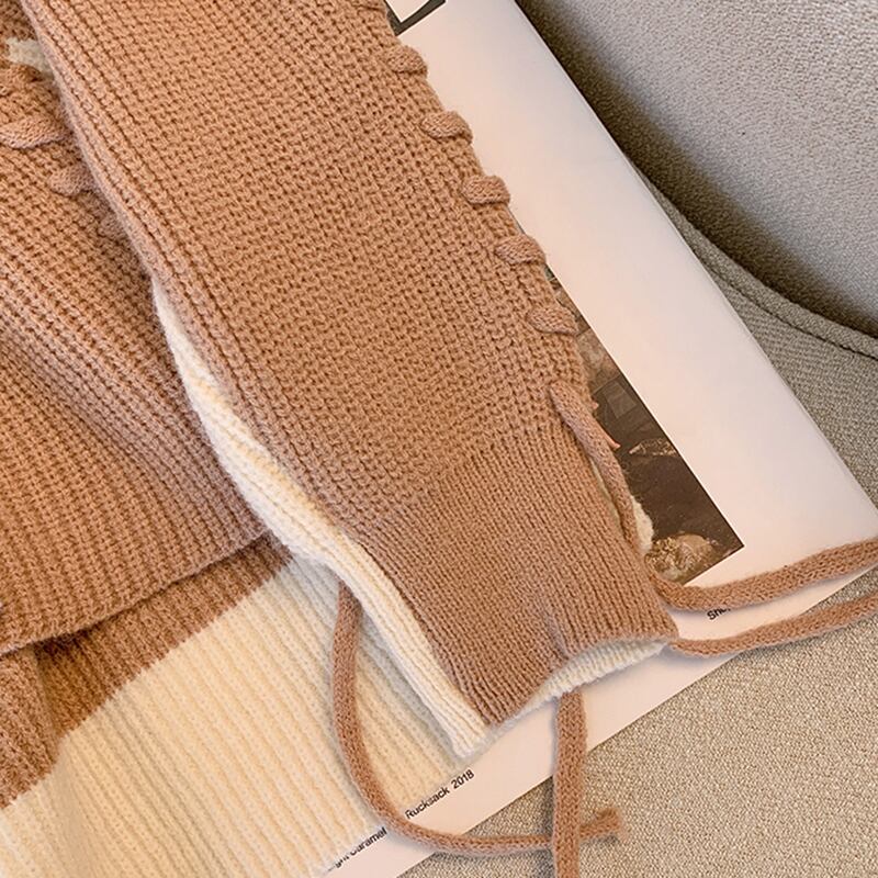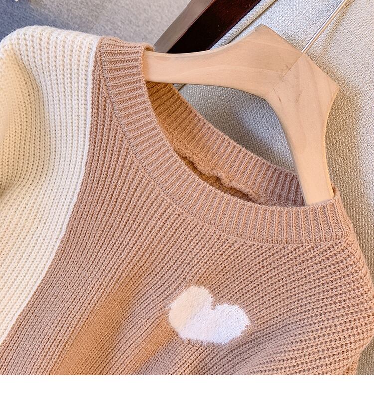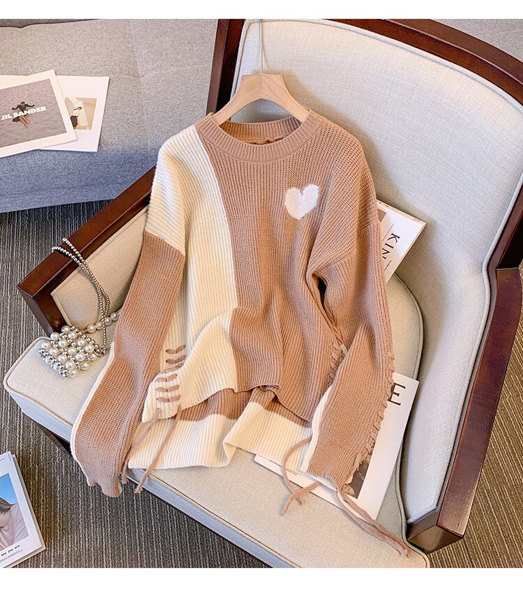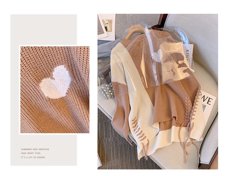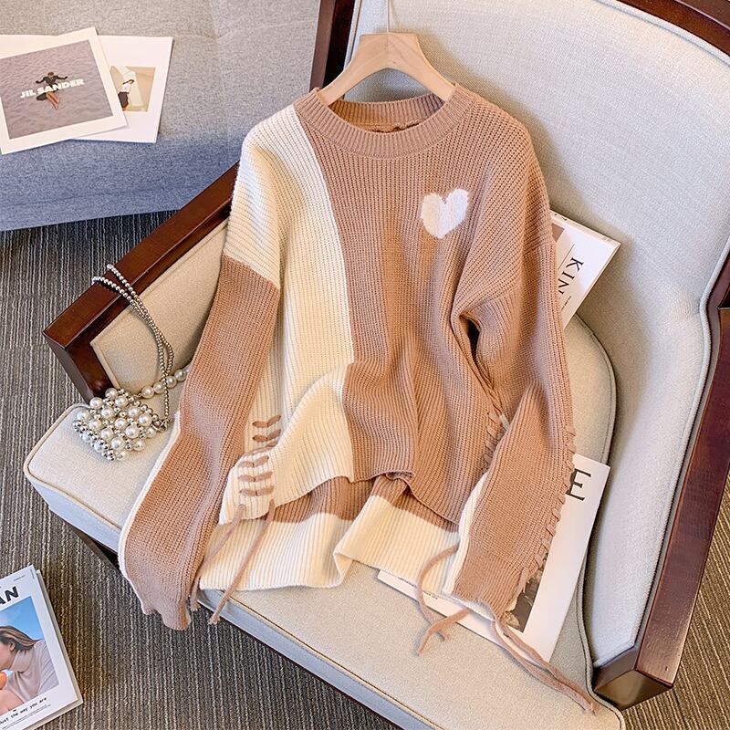 プラスサイズの婦人服 2023 春の新しいスタイルのファットシスターファッションコントラストカラースプライシングデザインルーズで用途の広いニットセーターの女性 大きめサイズ スプリング 春物 8884157854144096