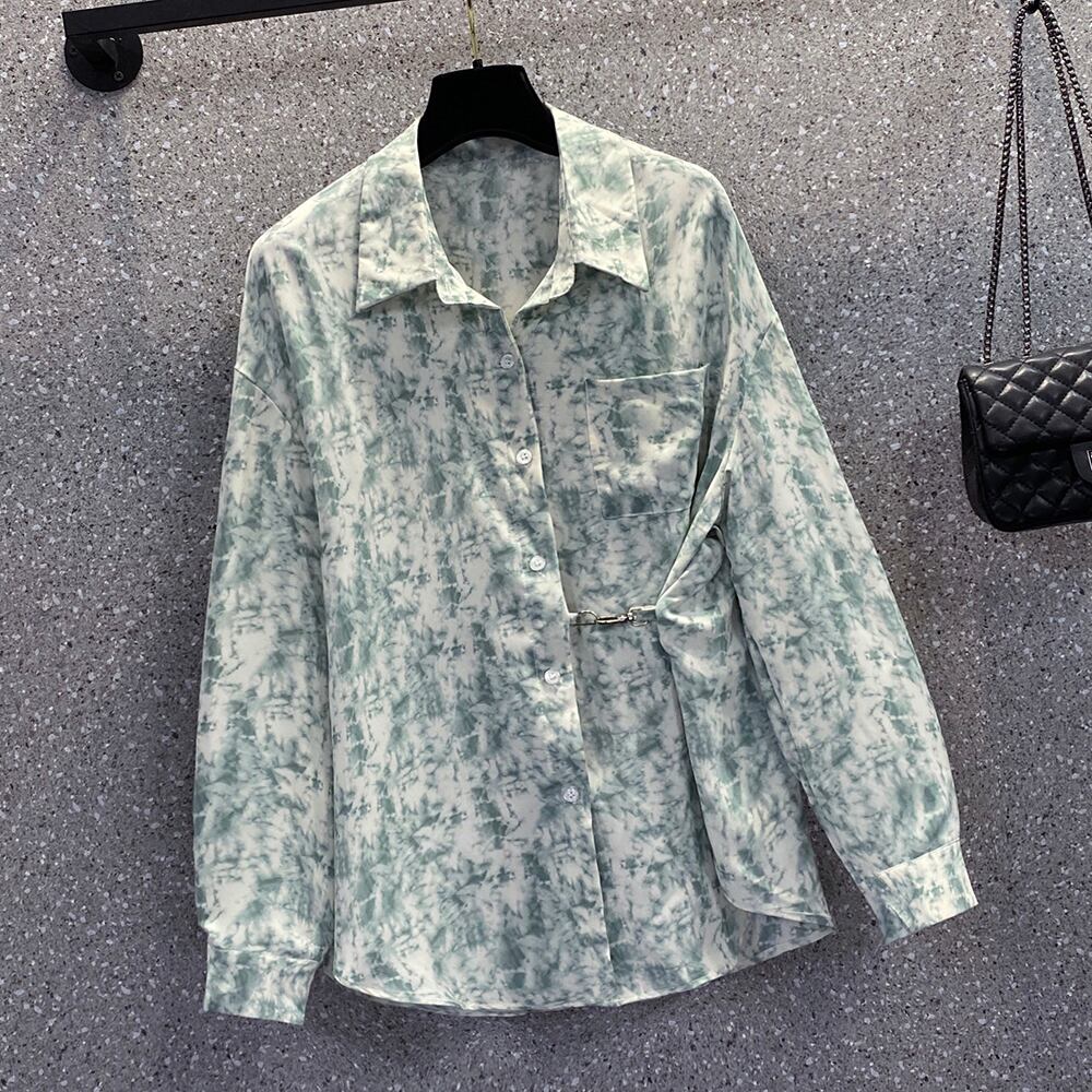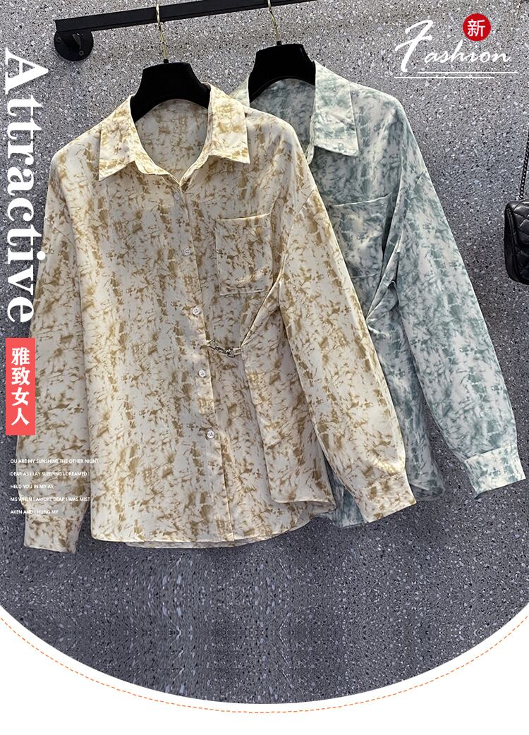 プラスサイズの婦人服2023ファットシスター春の新しいスタイルのeignスタイルのルーズで薄いニッチポケットデザインの長袖シャツの女性 ロング 大きめサイズ スプリング 春物 8884184390466715