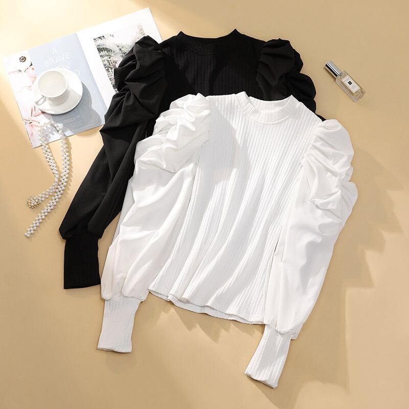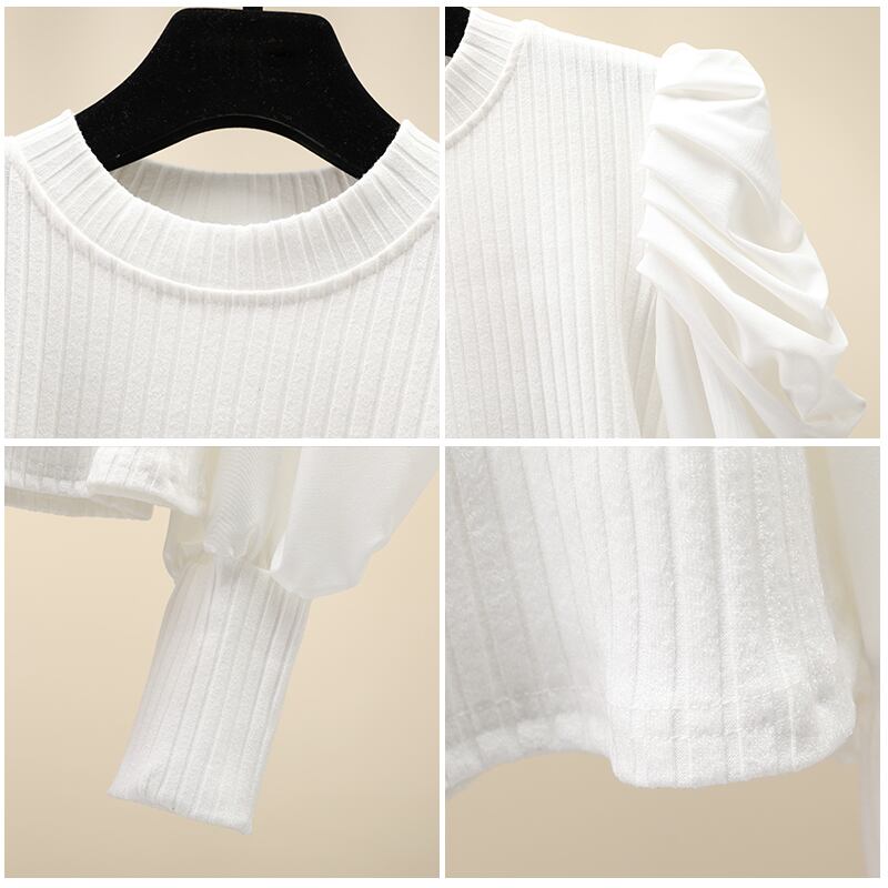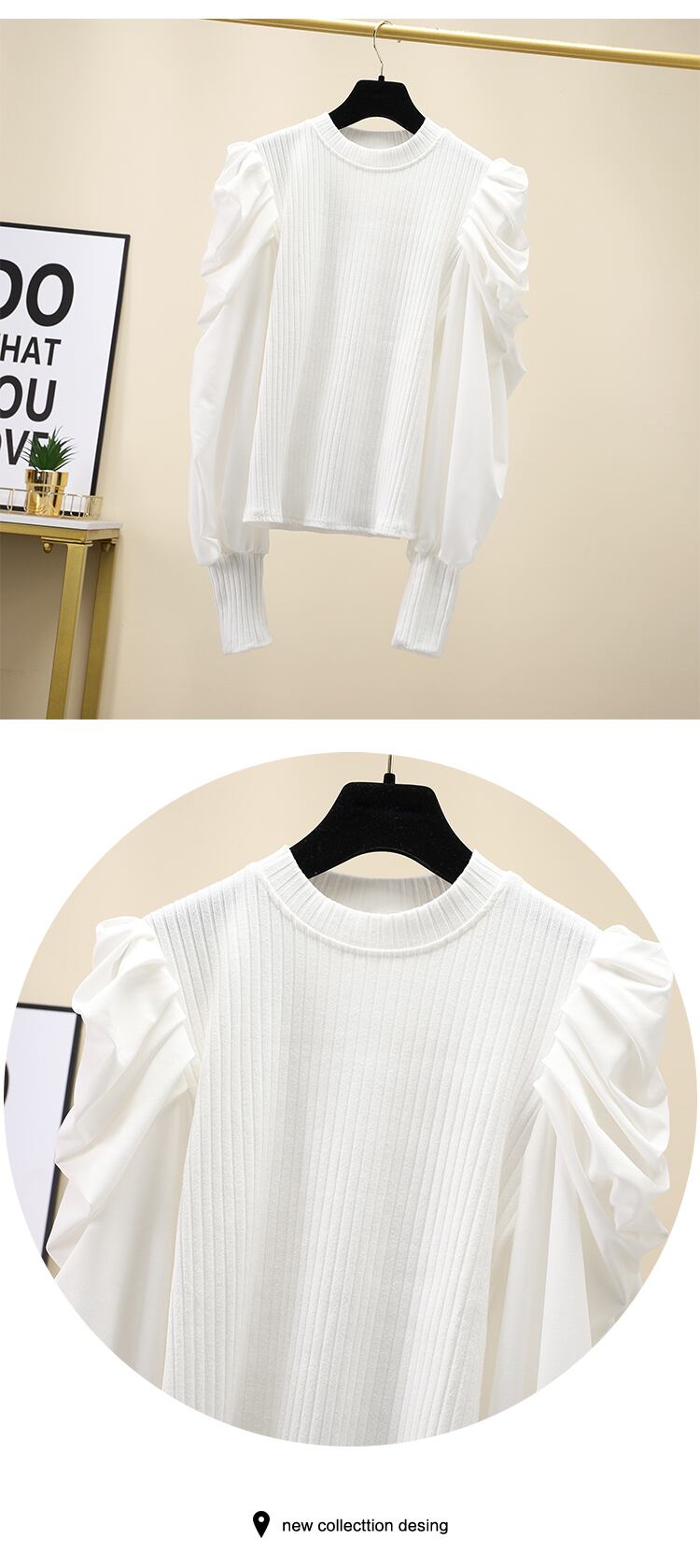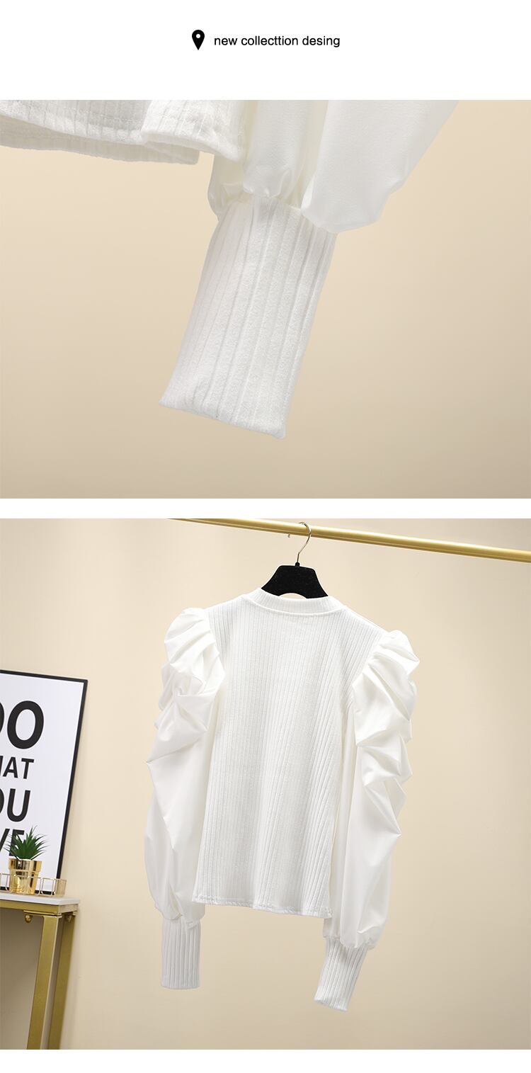 大きいサイズの婦人服 2023 太った姉妹春の新しいフレンチ スタイル eign スタイル年齢を減らすスリム パフ スリーブ ステッチ ニット トップ 大きめサイズ スプリング 春物 8884194863721666