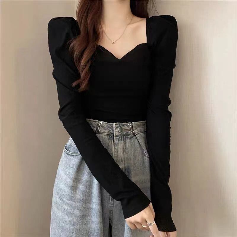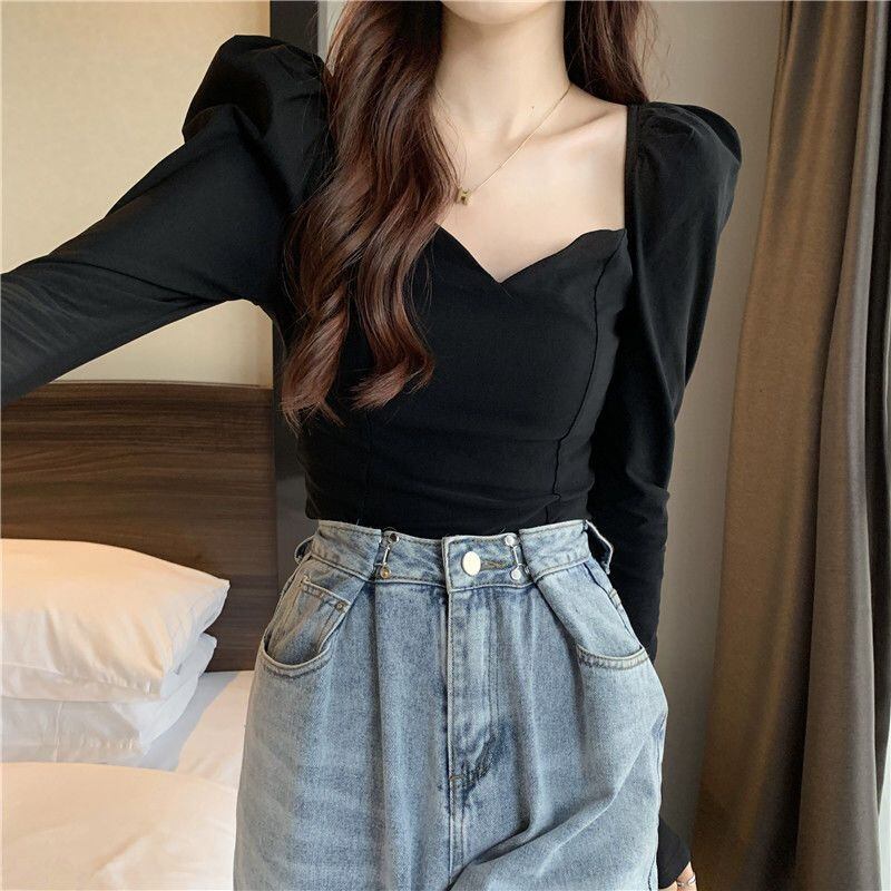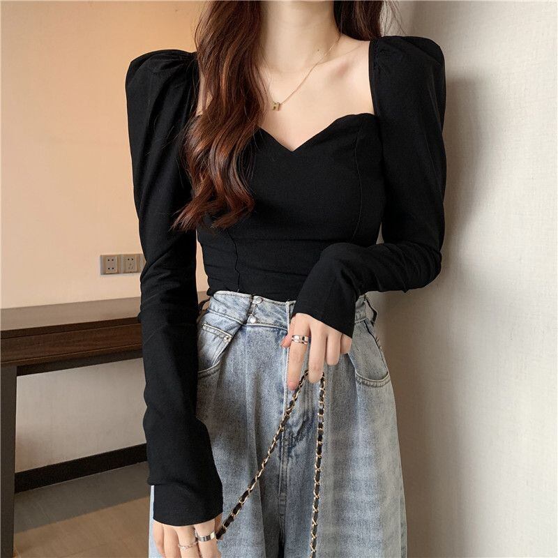 プラスサイズの婦人服 2023 トレンディな女性の春の新しい太った姉妹痩身底入れフランスのレトロな痩身と年齢を減らす T シャツ 大きめサイズ スプリング 春物 Tシャツ 8884192722048858