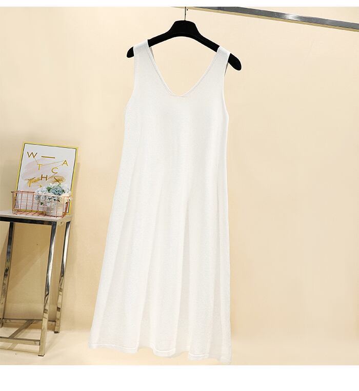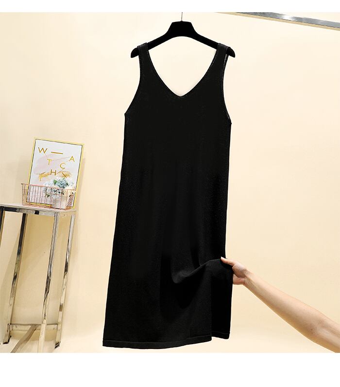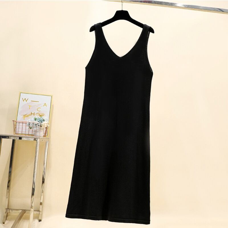 プラスサイズの婦人服 2023 トレンディな女性の夏の新しいファットシスターダブル V ネック湾曲したビーズロング A ラインスカートベストドレス割引 大きめサイズ サマー 夏物 Vネック Aライン 8884185354218913
