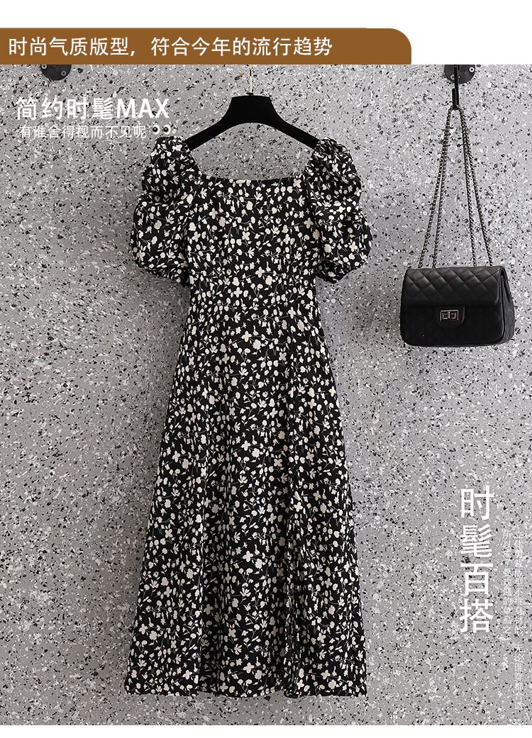 プラスサイズの婦人服 2023 脂肪姉妹夏の新しいスタイル eign バブルパフスリーブフレンチ半袖スクエアカラー花柄ドレス 大きめサイズ サマー 夏物 スクウェア 8884125744818860