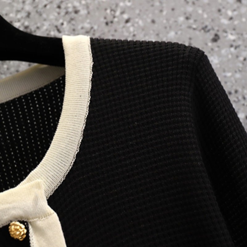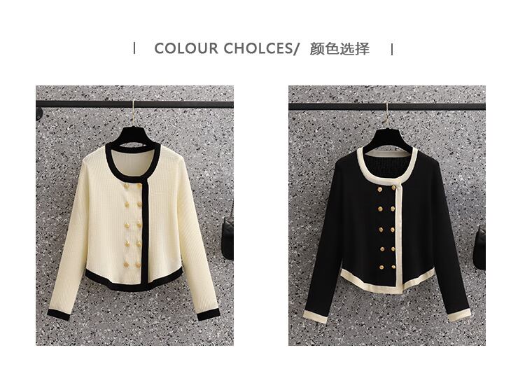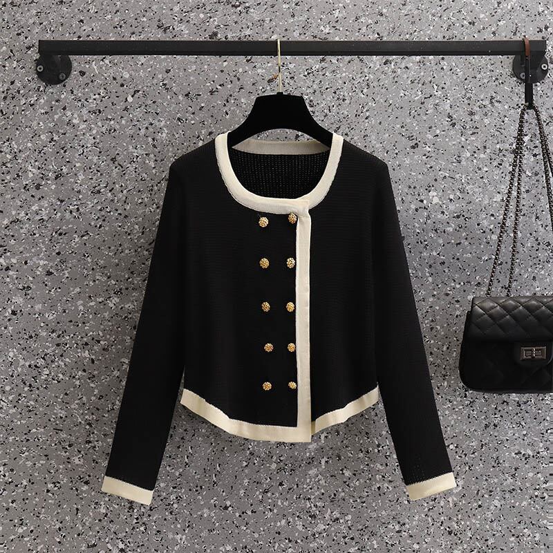 大きいサイズの婦人服 2023 春の新しいスタイルのファットシスター不規則なコントラストカラー痩身長袖ショートシックなニットトップ ロング 大きめサイズ スプリング 春物 8884194217180895