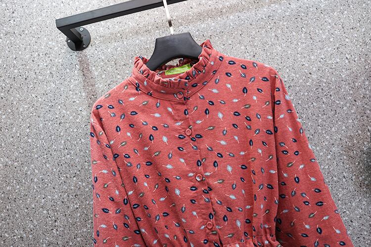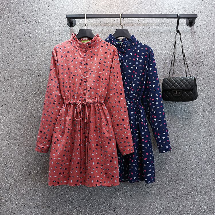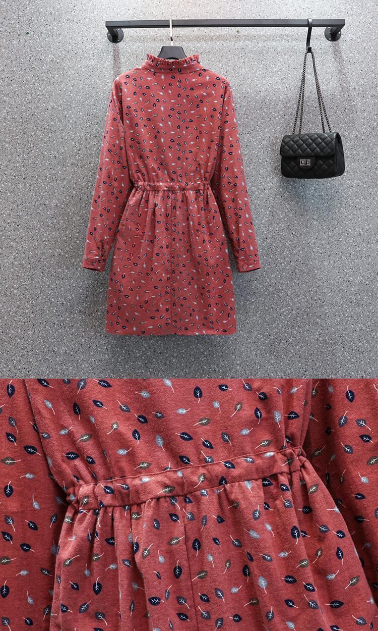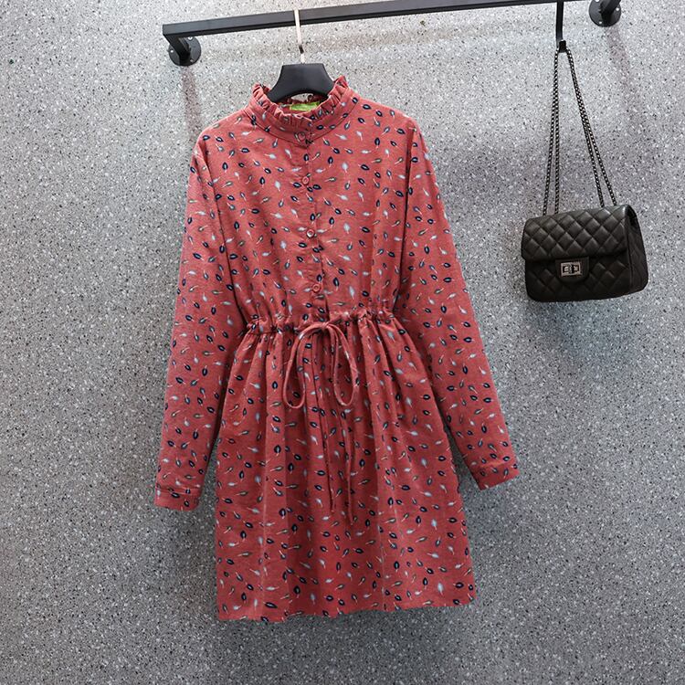 プラスサイズの婦人服 2023 トレンディな女性の春の新しいファットシスター小さな花柄のウエスト長袖の厚みのある起毛プリントドレス ロング 大きめサイズ スプリング 春物 8884136498695066