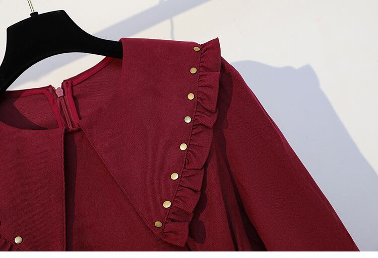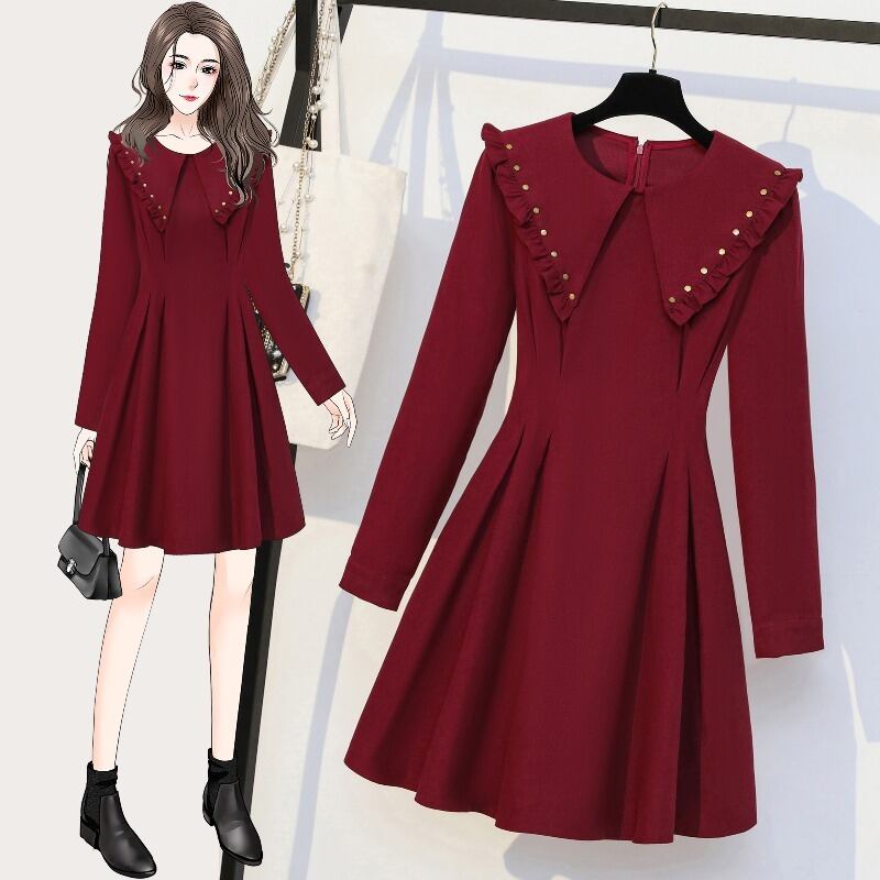 プラスサイズの婦人服 2023 春の新しいスタイルの太った姉妹は、薄い気質の腰を覆う肉のデザインの無地のドレスに見えます 大きめサイズ スプリング 春物 ソリッドカラー 8884138348289794