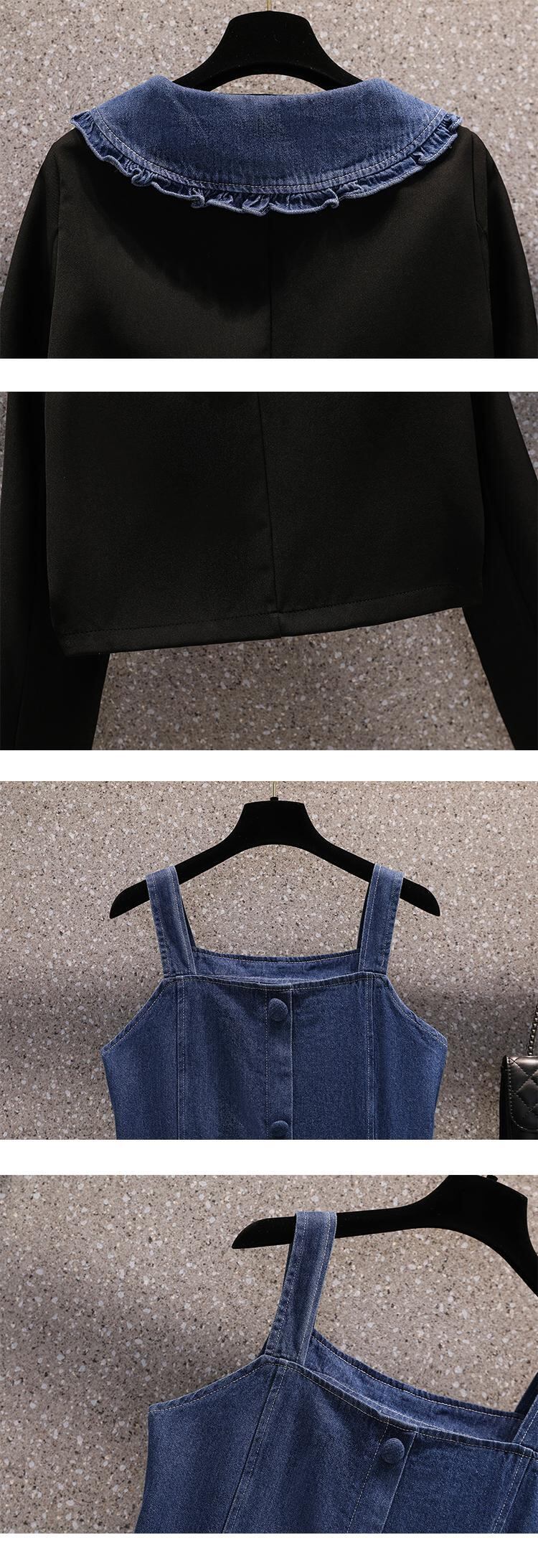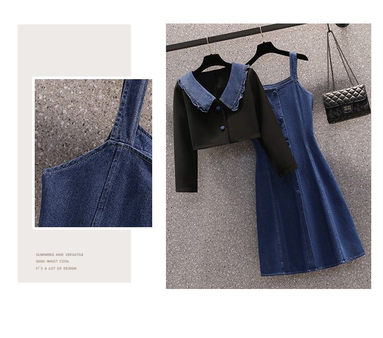 プラスサイズの婦人服 2023 脂肪姉妹春の新デニムサスペンダードレスショーツスーツジャケット 2 点セット 大きめサイズ スプリング 春物 ブルマー 8884169372752585