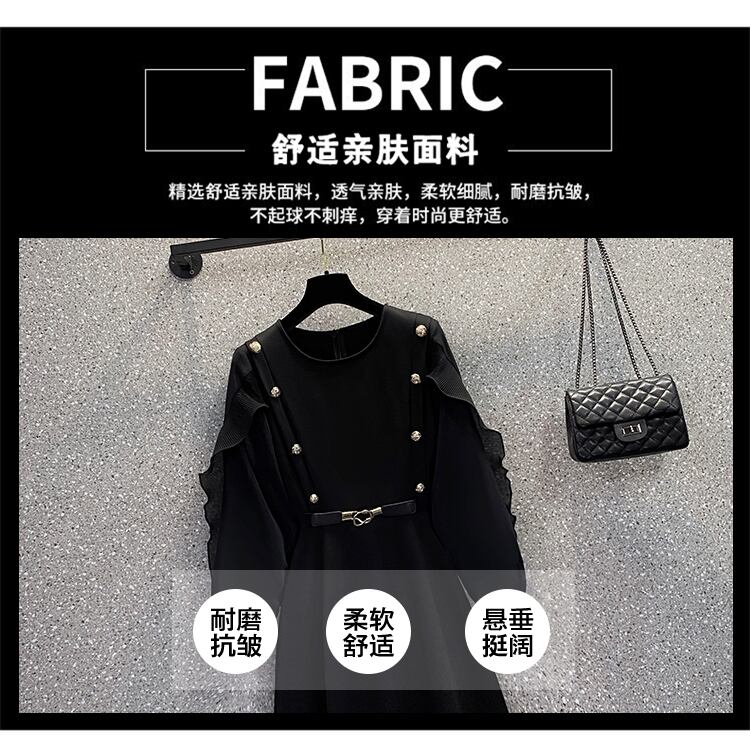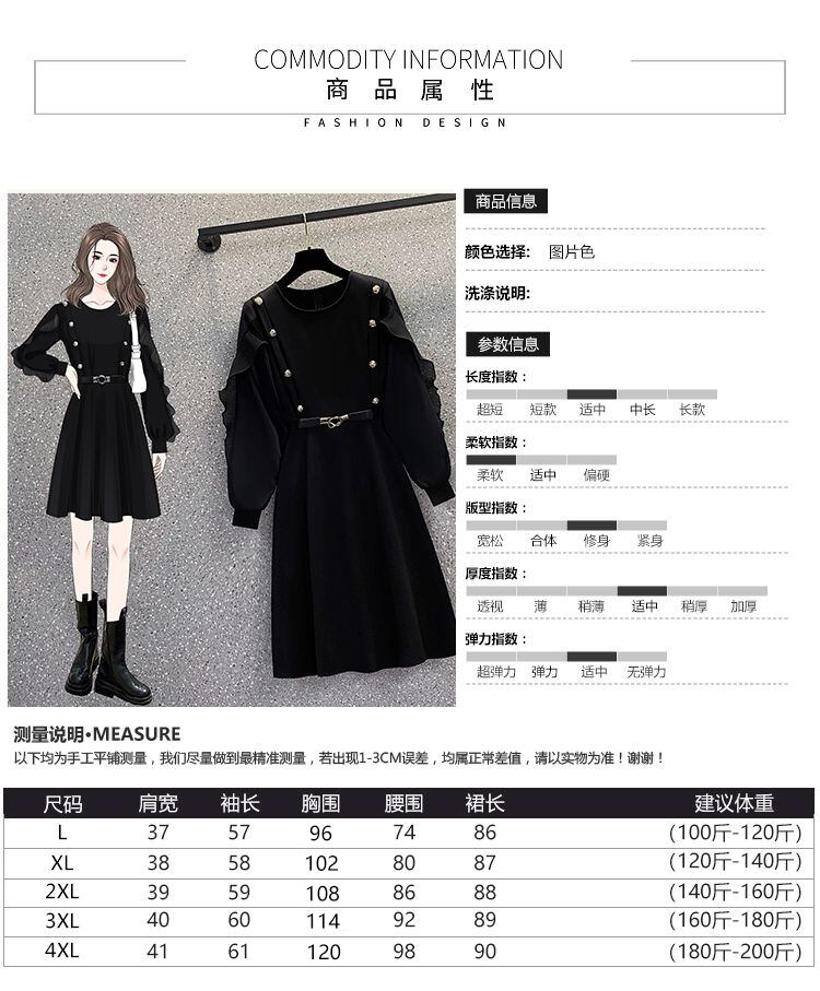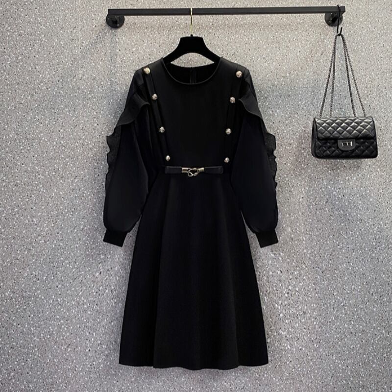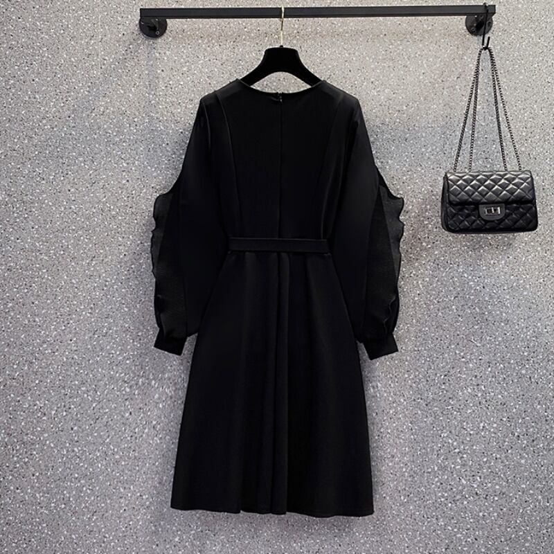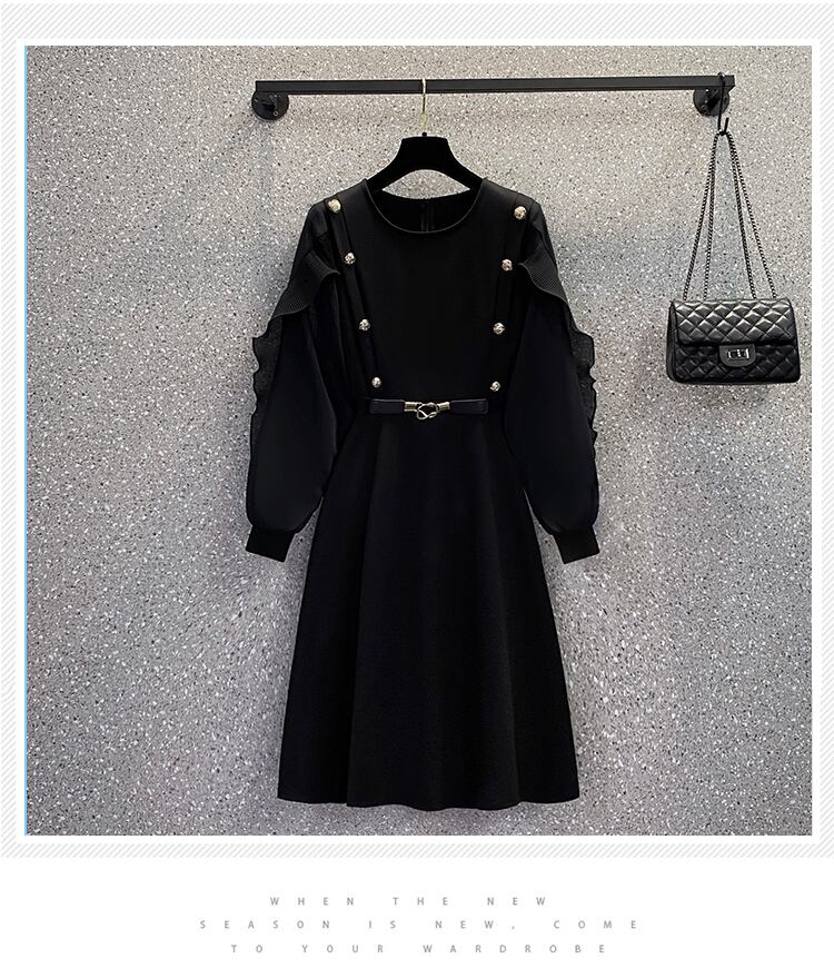 大きいサイズの婦人服 2023 春の新スタイル脂肪姉妹気質メッシュステッチ受信ウエスト痩身フレンチドレス女性 大きめサイズ スプリング 春物 8884162374264960
