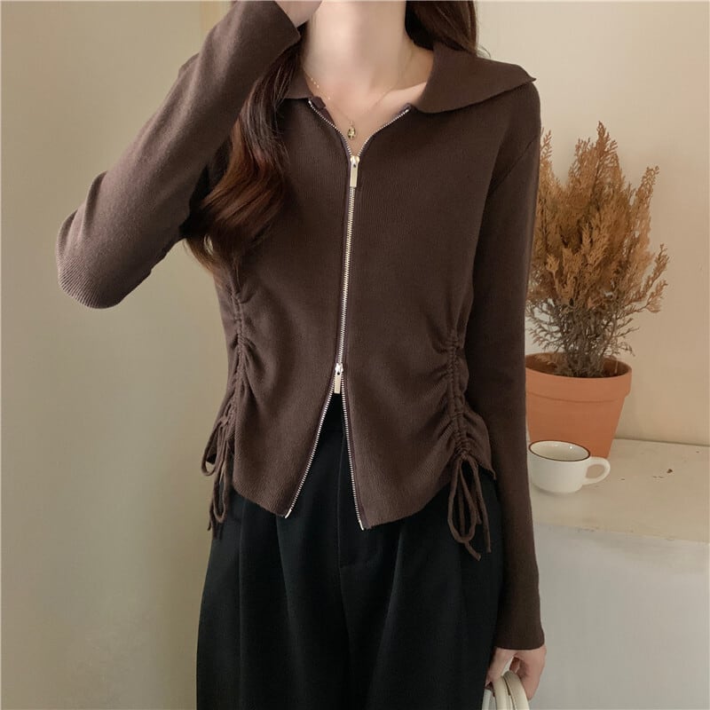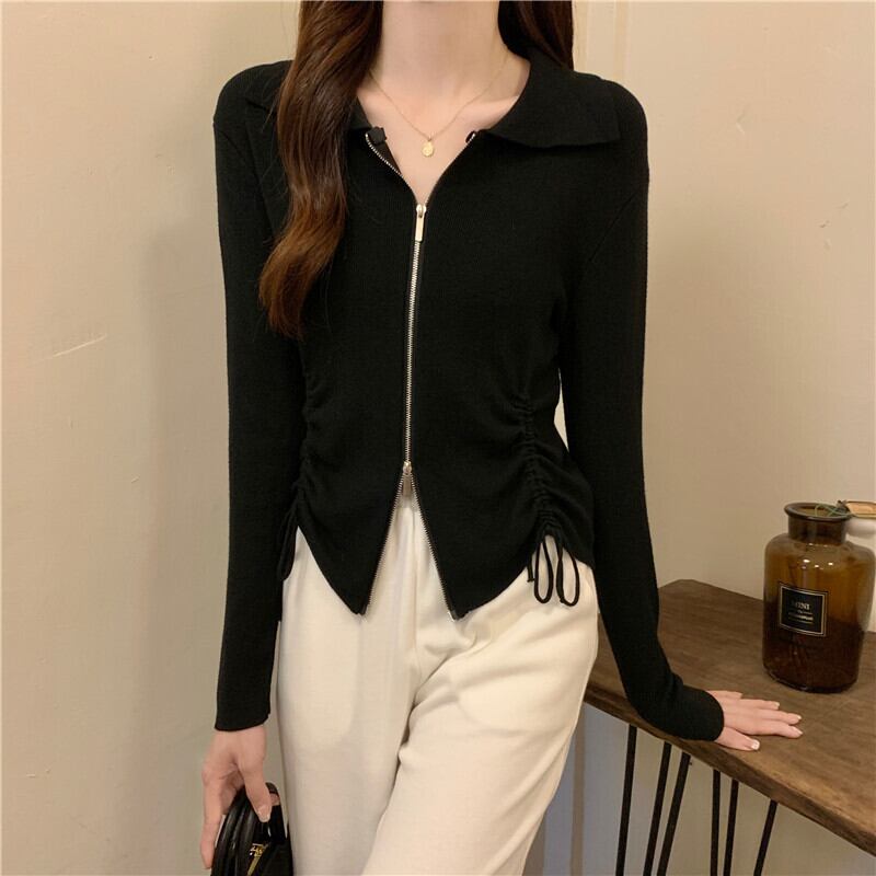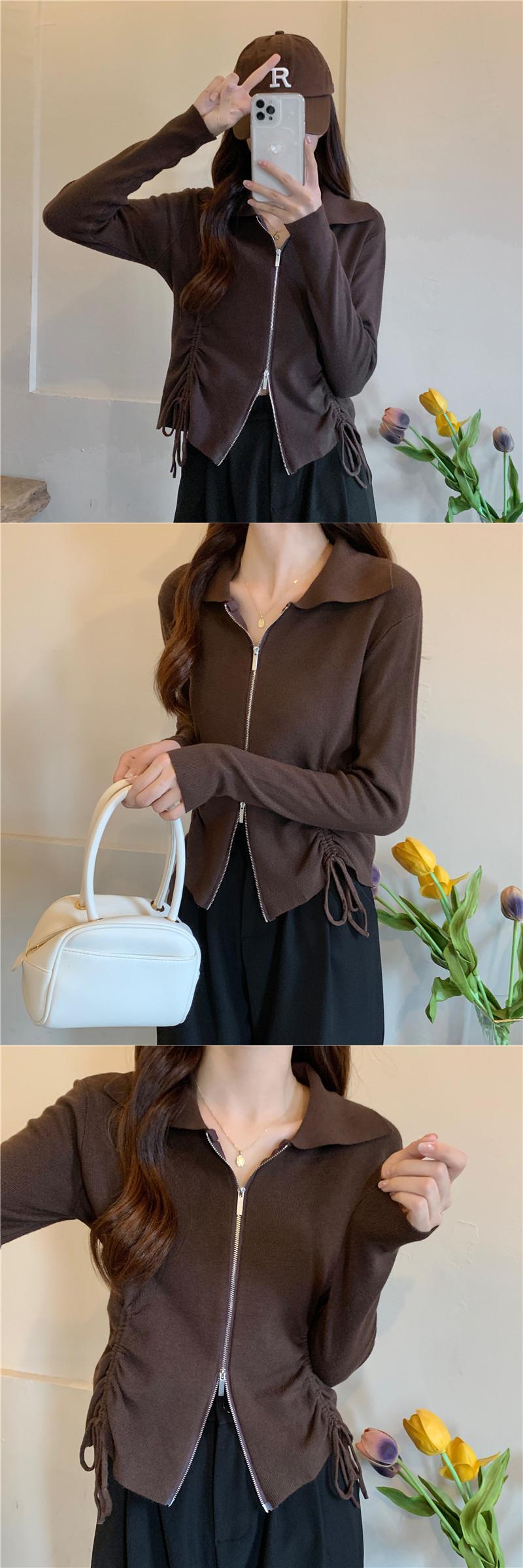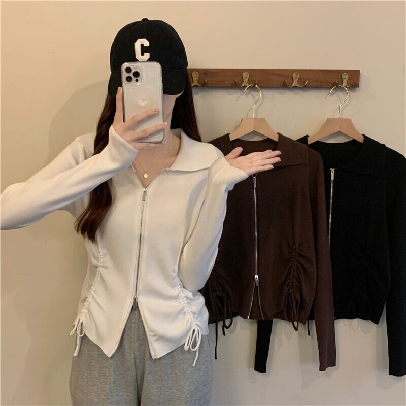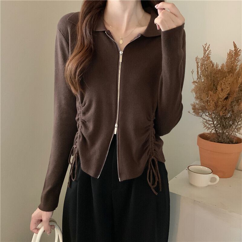 大きいサイズの婦人服 2023 トレンディな女性の春の新しい太った姉妹 v ネック ニット デザイン ジッパー長袖痩身セーター ロング 大きめサイズ スプリング 春物 Vネック 8884111885184871