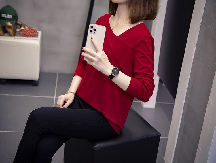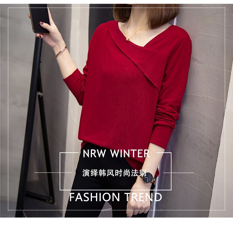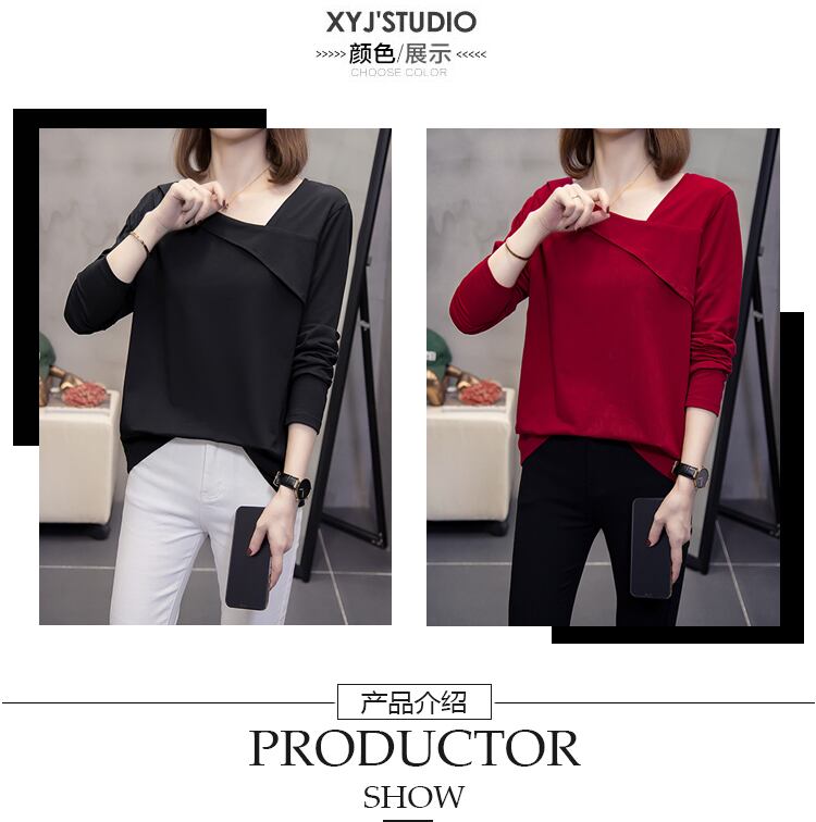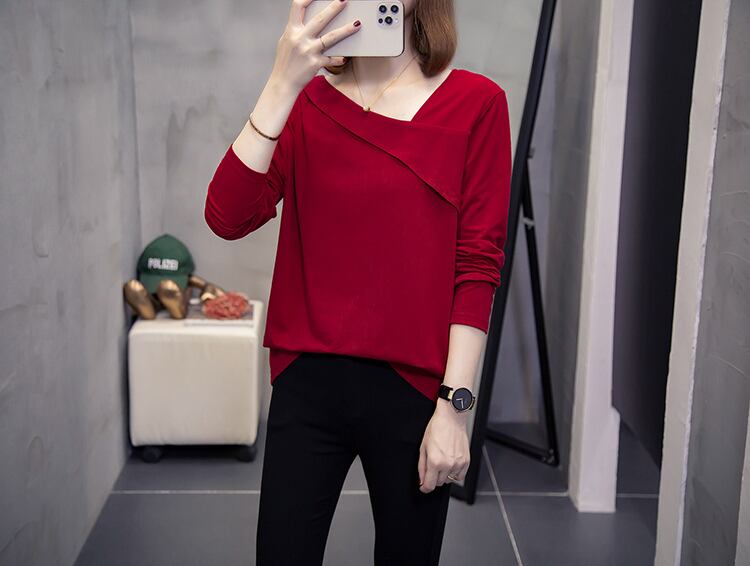 大きいサイズの婦人服 2023 春の新しい太った姉妹 eign スタイルのデザイン感覚不規則な傾斜肩スリム長袖トップの女性 ロング 大きめサイズ スプリング 春物 8884159285892714