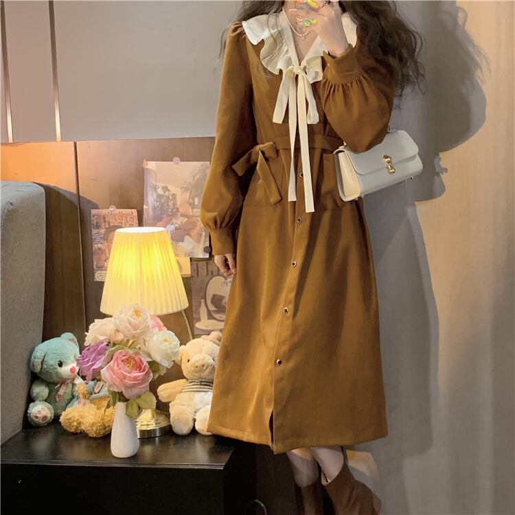 プラスサイズの婦人服 2023 春服脂肪姉妹新しいフレンチカラーコントラストちょう結びシングルブレストスリムドレス女性 リボン 大きめサイズ スプリング 春物 8884191854217920