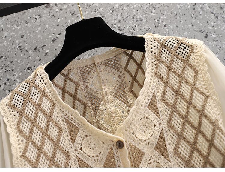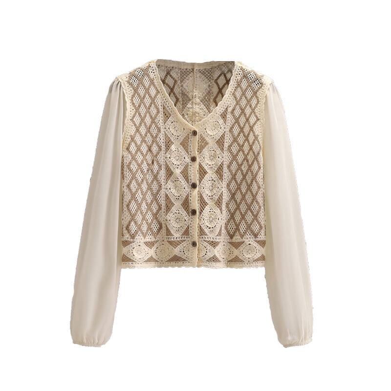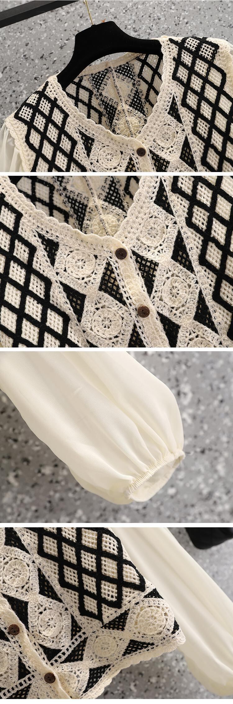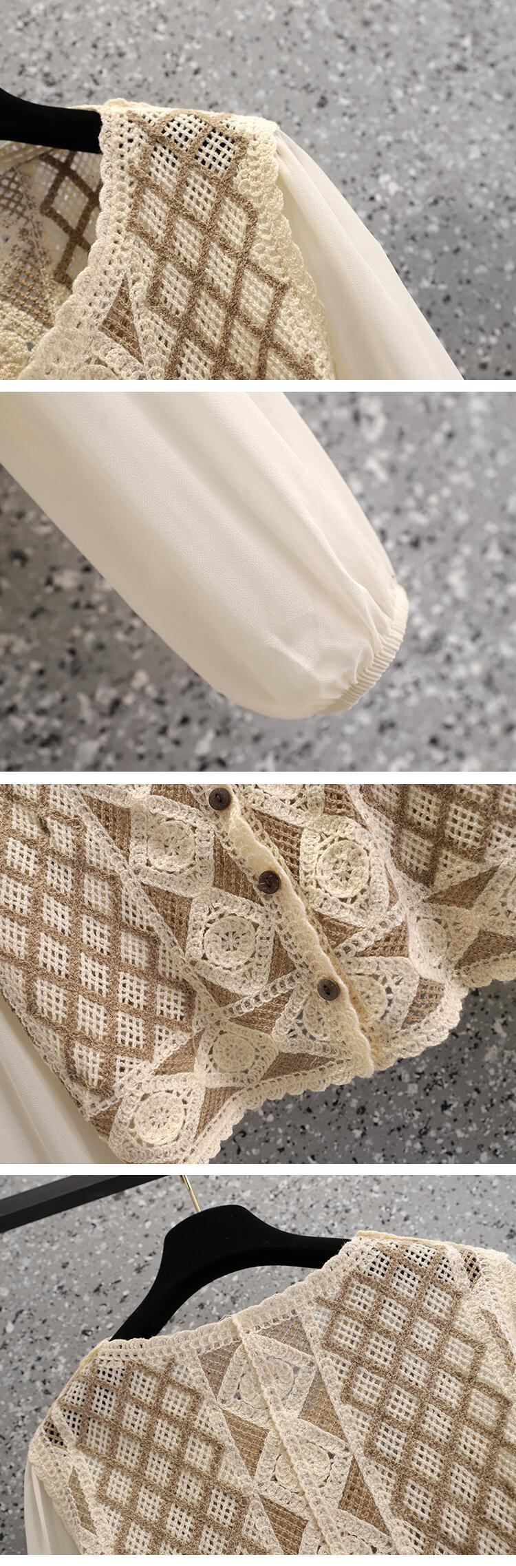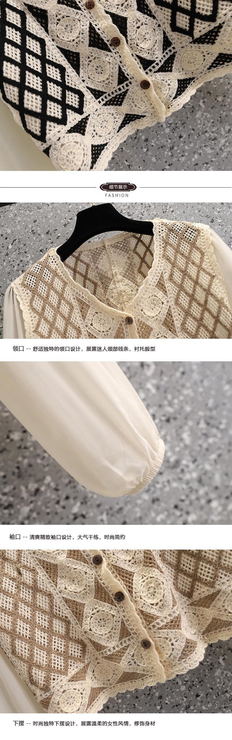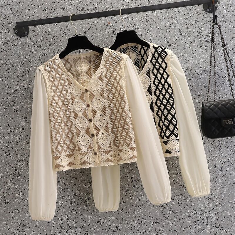 プラスサイズの婦人服 2023 春服脂肪姉妹新しいニッチかぎ針編み中空ステッチ シフォン長袖カーディガン トップ ロング 大きめサイズ スプリング 春物 8884164522641691