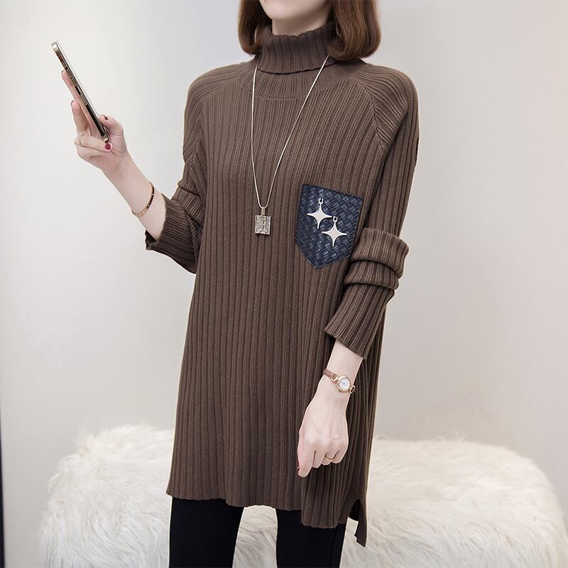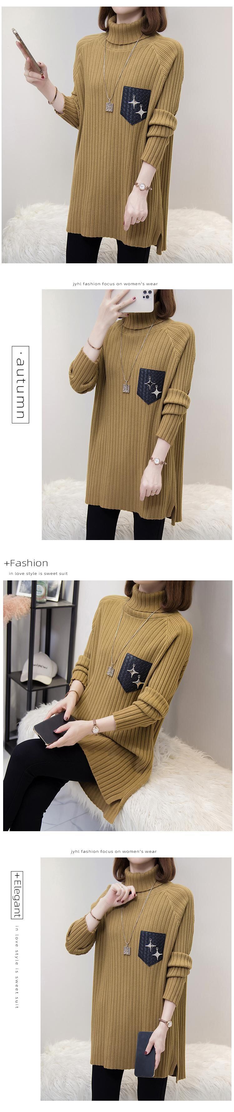 大きいサイズの婦人服 2023 ファット シスター春の新作プルオーバー長袖ボトムス セーター中丈タートルネック セーター ロング 大きめサイズ スプリング 春物 8884167675726391