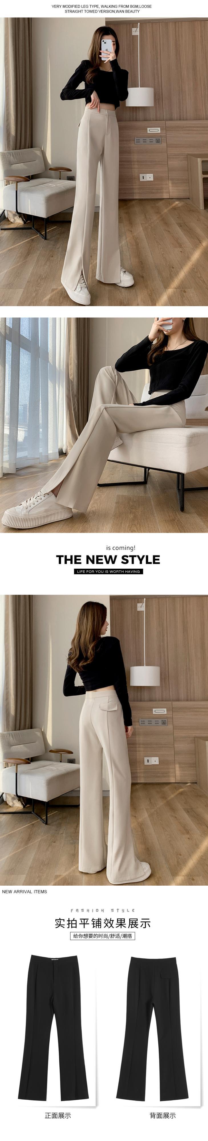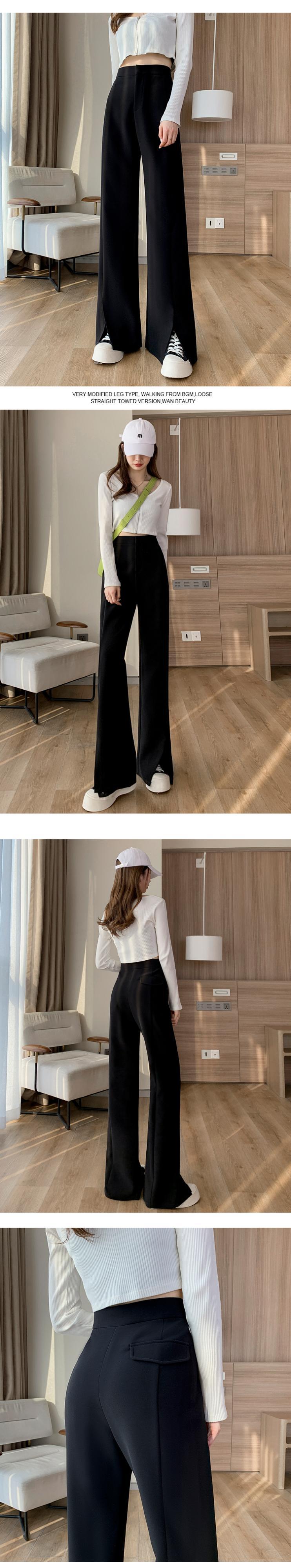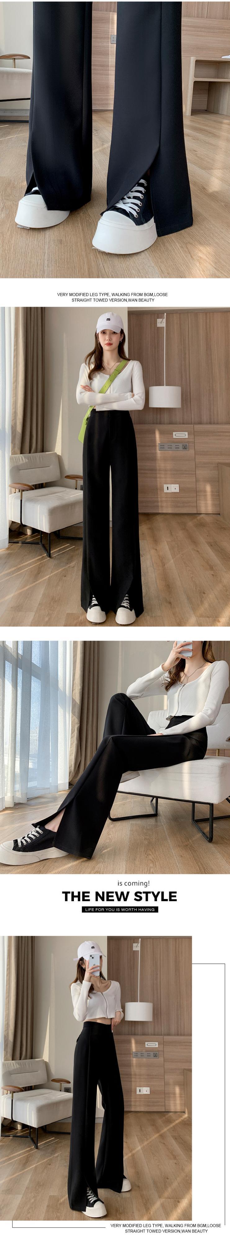 プラスサイズの婦人服 2023 トレンディな女性の春の新しいスタイルのファットシスターファッションハイウエストストレートチューブスリットマイクロトランペットウールワイドレッグパンツ ハイウェスト 大きめサイズ スプリング 春物 ワイドパンツ 8884134175485793