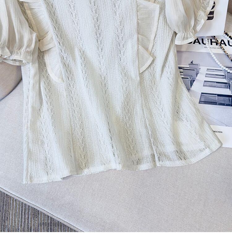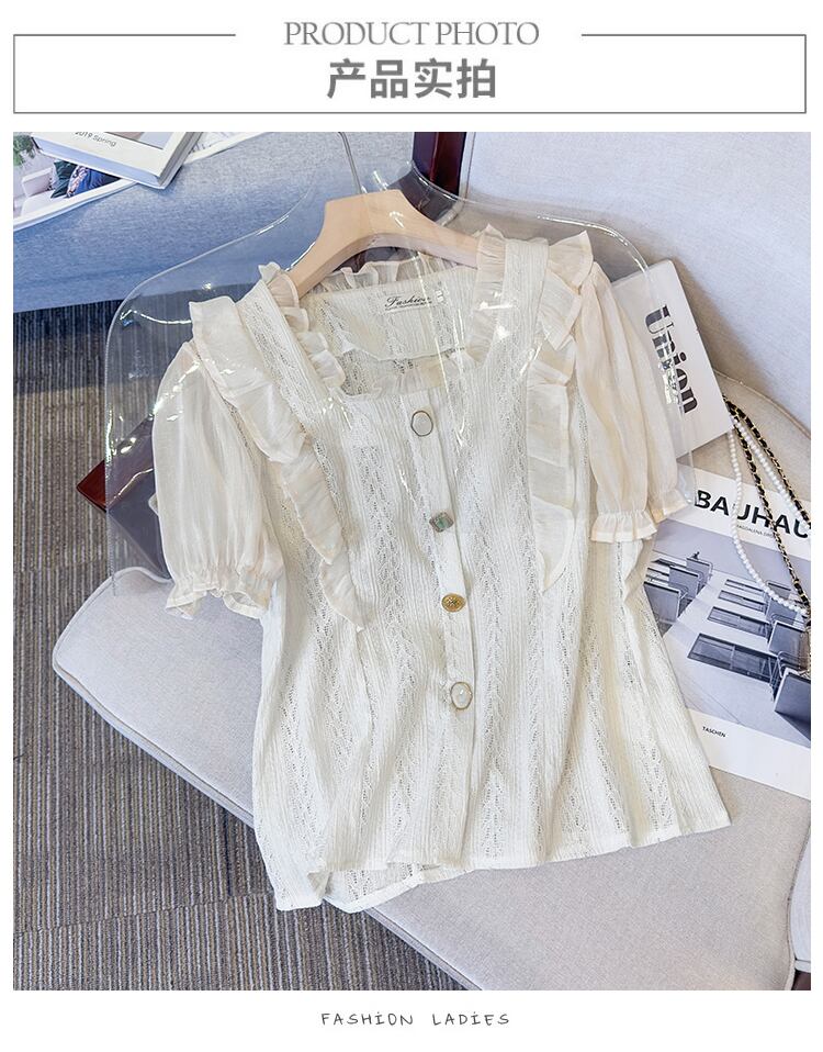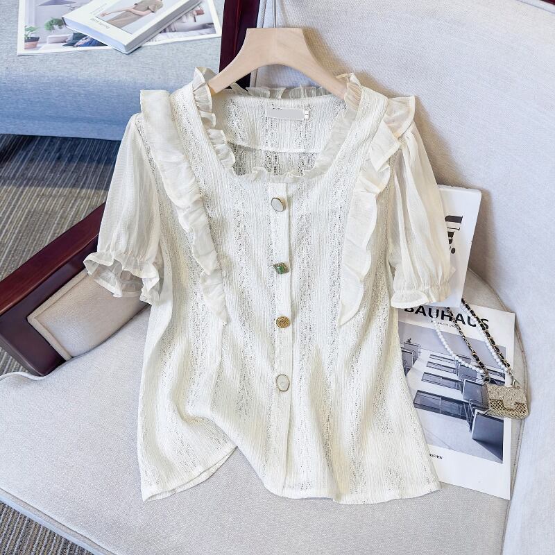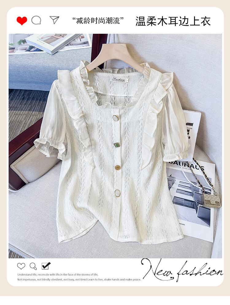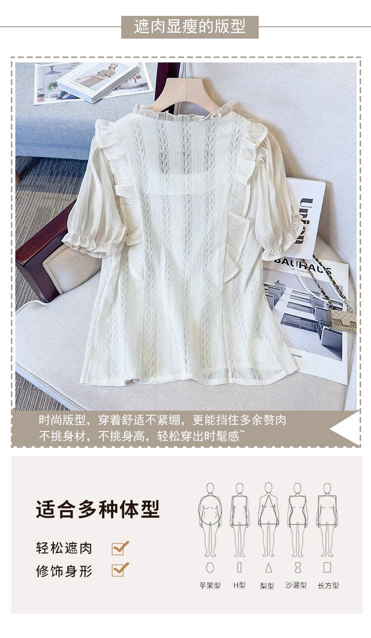 プラスサイズの婦人服 2023 夏の新しい太った姉妹年齢を減らす気質フリル スクエア カラー半袖腹カバー シャツ女性 大きめサイズ サマー 夏物 スクウェア 8884117771695873