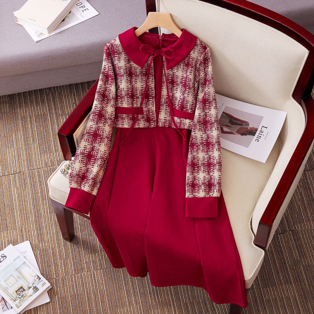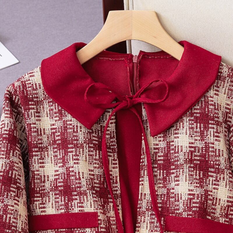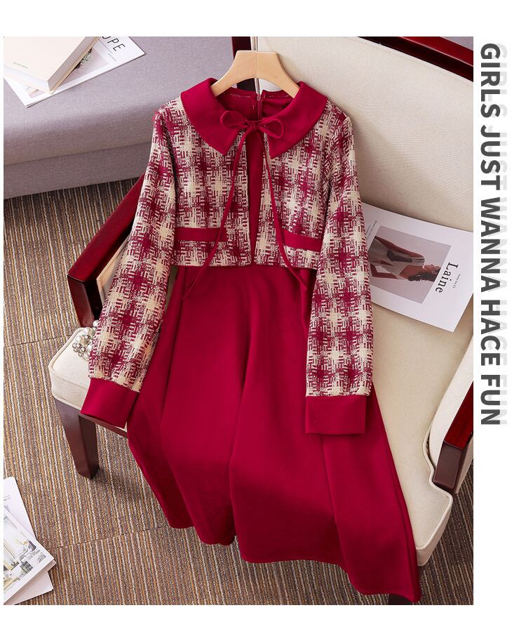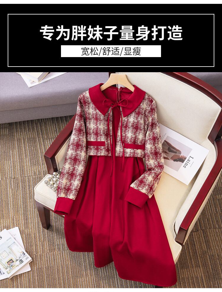 プラスサイズの婦人服 2023 春の新しいファットシスター スプライシング レトロ ウエスト ウエスト フェイク ツーピース シックな肉を覆うドレス 大きめサイズ スプリング 春物 8884137604491710
