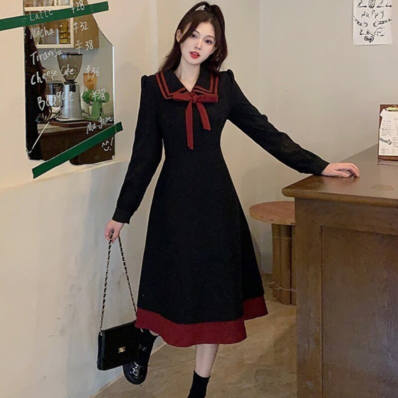プラスサイズの婦人服 2023 トレンディな女性の春の新しいファットシスターステッチウエストと薄い友人ちょう結びのドレス リボン 大きめサイズ スプリング 春物 8884191299902504