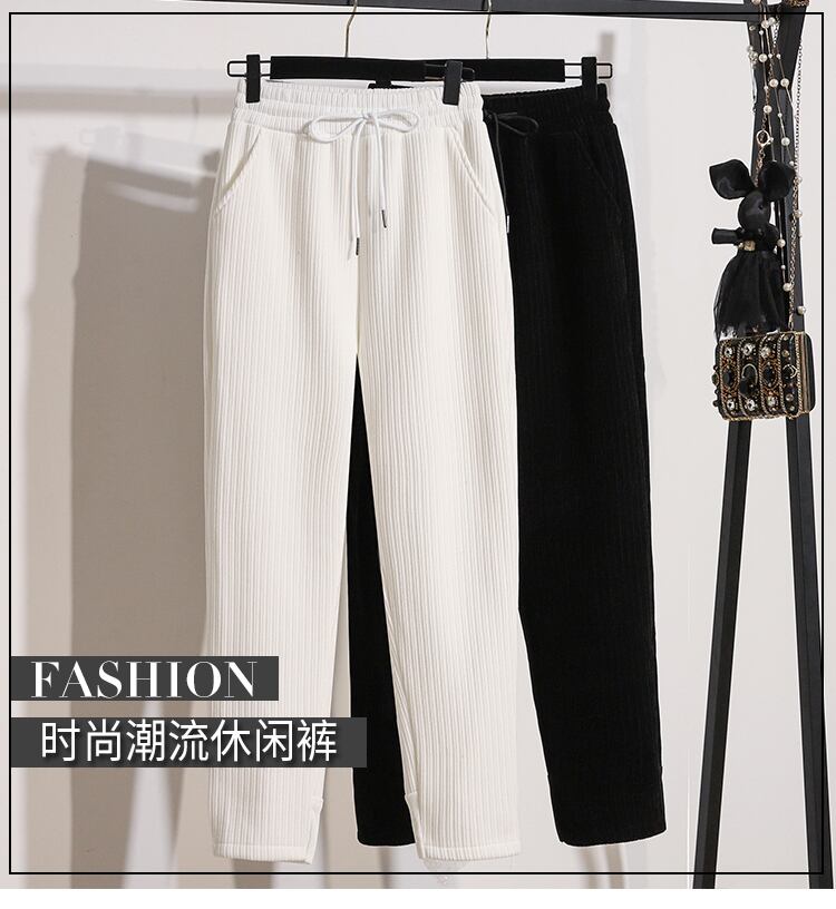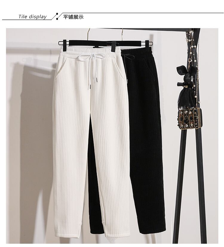 豪華な肥厚ハーレム パンツ女性の冬 2022 新しい大きいサイズの婦人服年齢を減らすハイ ウエスト スリム キャロット カジュアル パンツ ハイウェスト 大きめサイズ ウィンター 冬物 8884159071253792