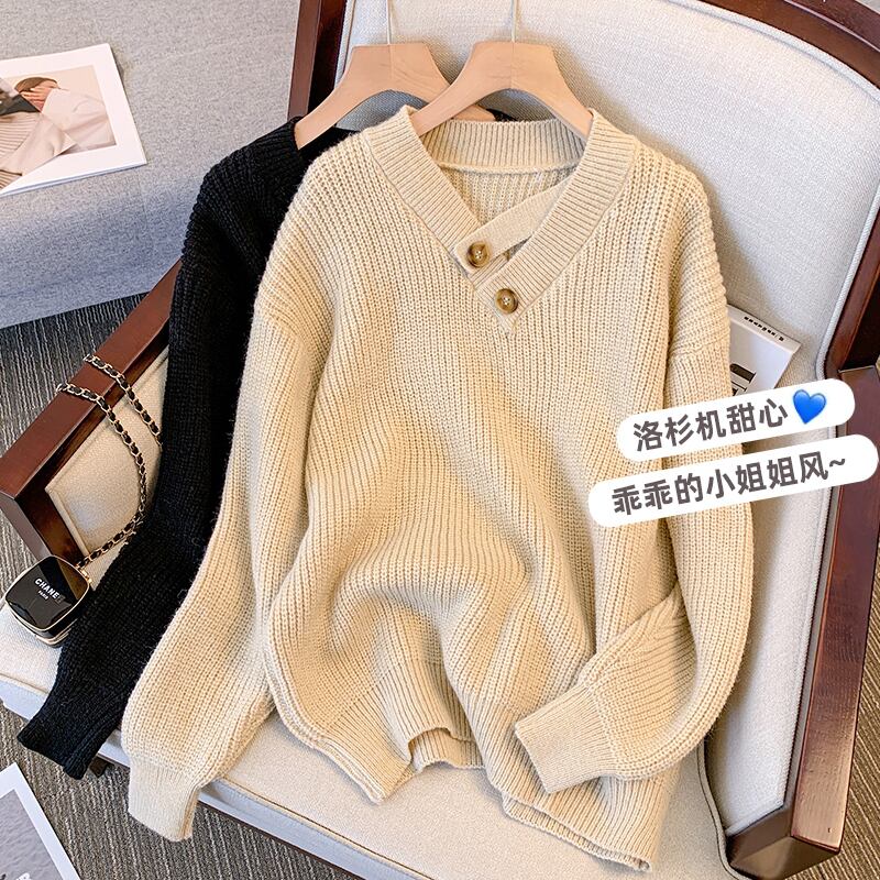 大サイズの婦人服 2023 ファットシスター春の新 V ネックニット底入れシャツ無地気質長袖トップ女性 ロング 大きめサイズ スプリング 春物 Vネック ソリッドカラー 8884183264080226