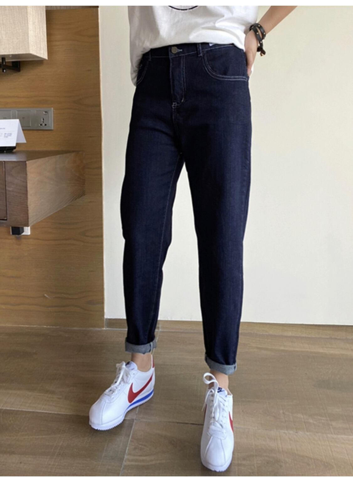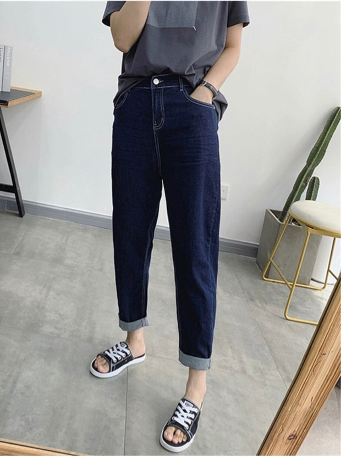 プラスサイズの婦人服 2023 ファットシスター春の新ファッションシガレットパンツ大根パンツハイウエストスリムデニムハーレムパンツ ハイウェスト 大きめサイズ スプリング 春物 8884161470555541