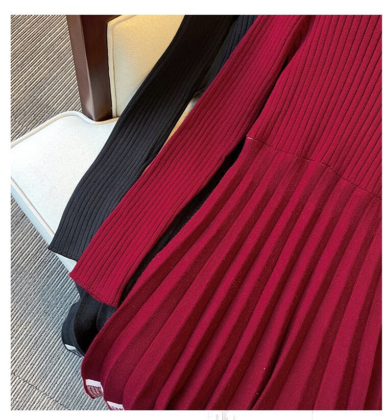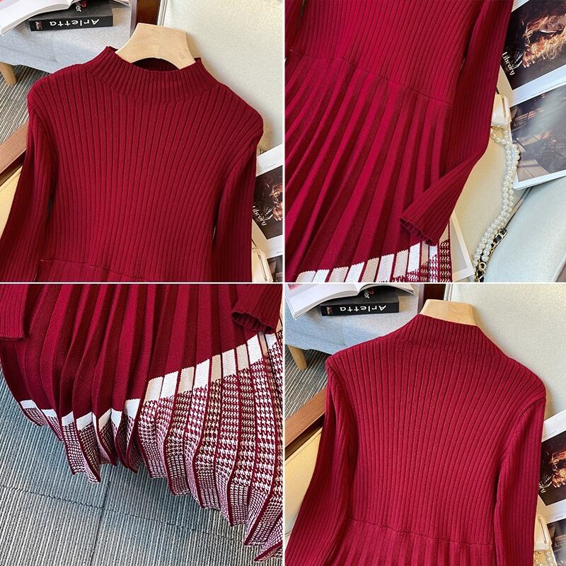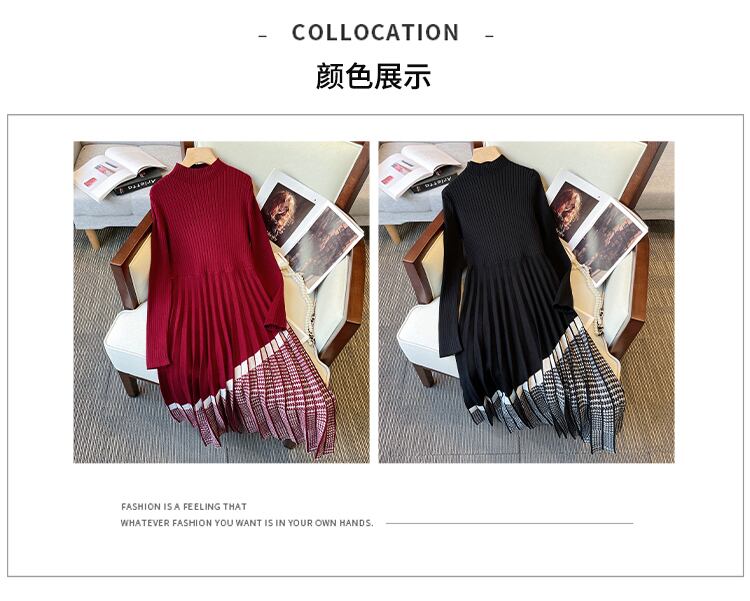 大きいサイズの婦人服 2023 トレンディな女性の春の新しいファット シスター フレンチ デザイン ハーフハイ カラー ニット ボトミング ドレス 大きめサイズ スプリング 春物 8884135519887192