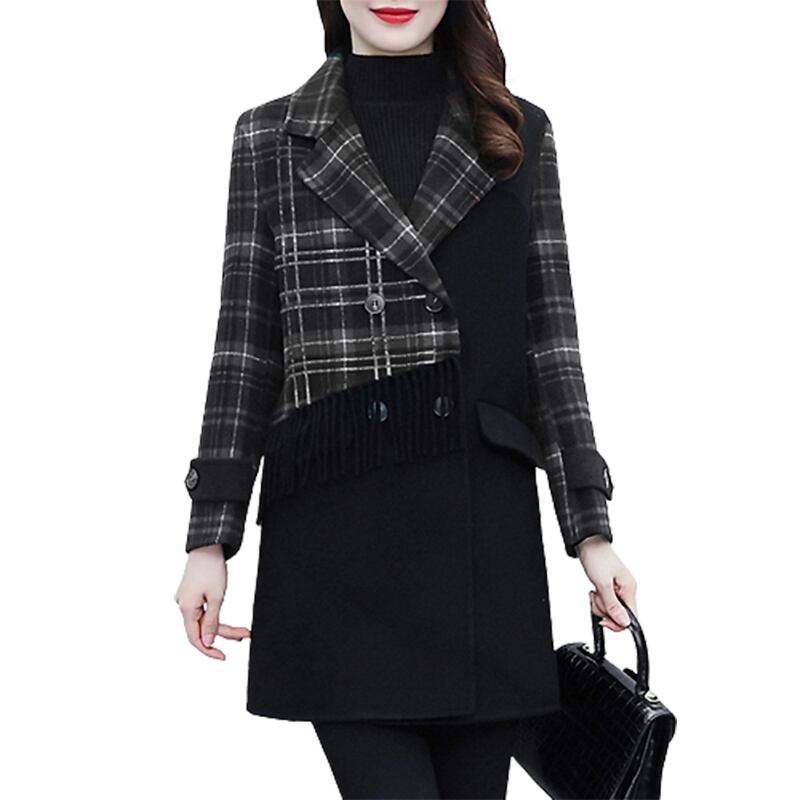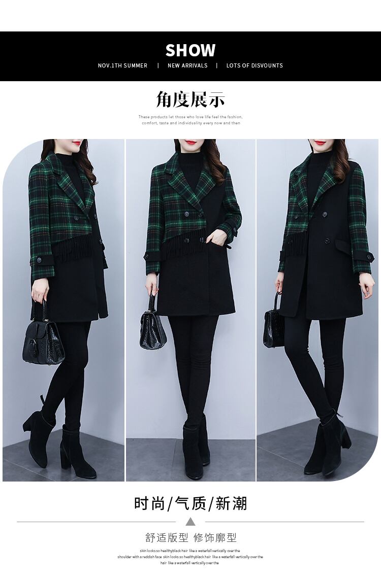 プラスサイズの婦人服2023トレンディな女性の春の新しいファットシスタースプライシング両面ファッション気質の年齢を減らすオールマッチウールコート 大きめサイズ スプリング 春物 8884113304330923
