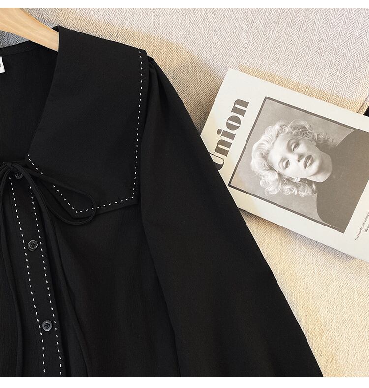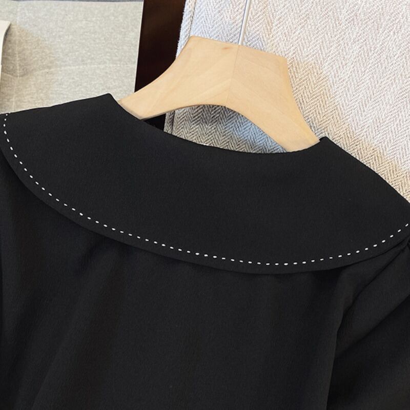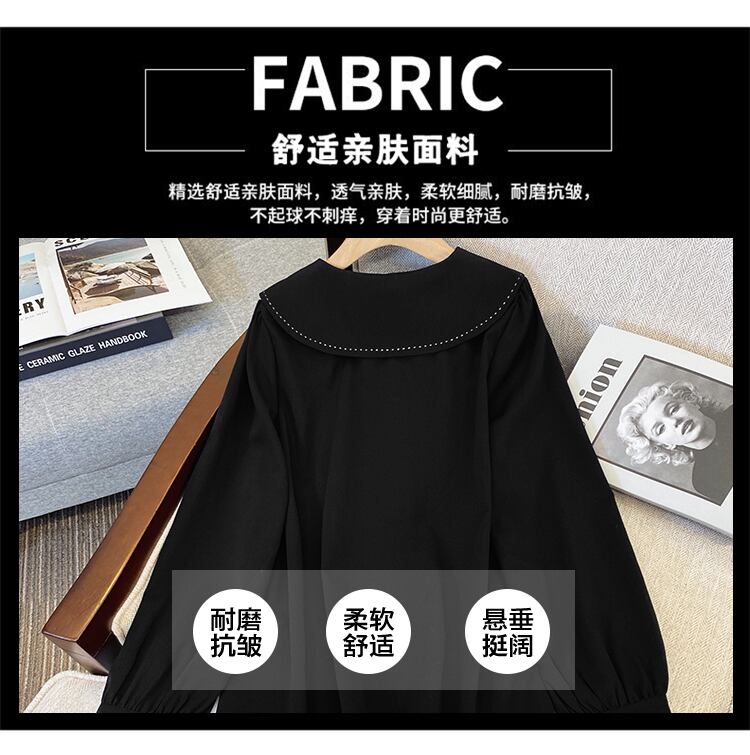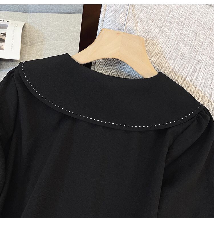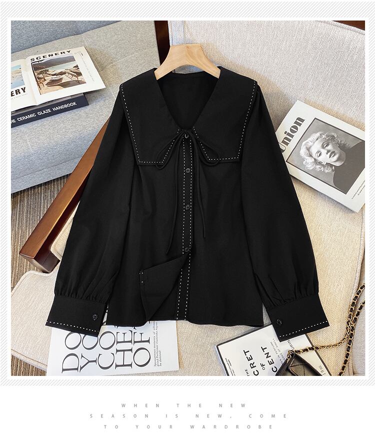 大きいサイズの婦人服 2023 春の新しいスタイルの太った姉妹に見える薄い気質無地デザインセンス人形の襟カジュアルシャツ女性 大きめサイズ スプリング 春物 ソリッドカラー 8884170106936310