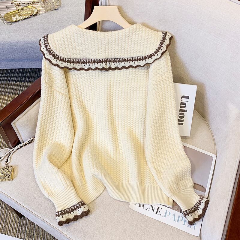 プラスサイズの婦人服 2023 脂肪姉妹春の新しい人形の襟レトロセーターデザインセンスニッチニットセーター女性 大きめサイズ スプリング 春物 8884128974483932