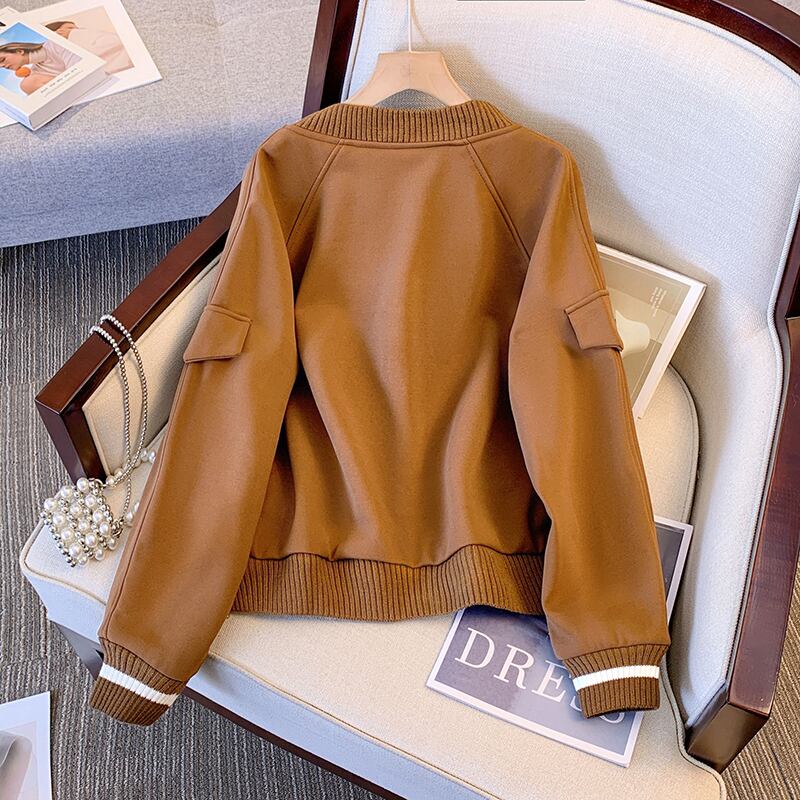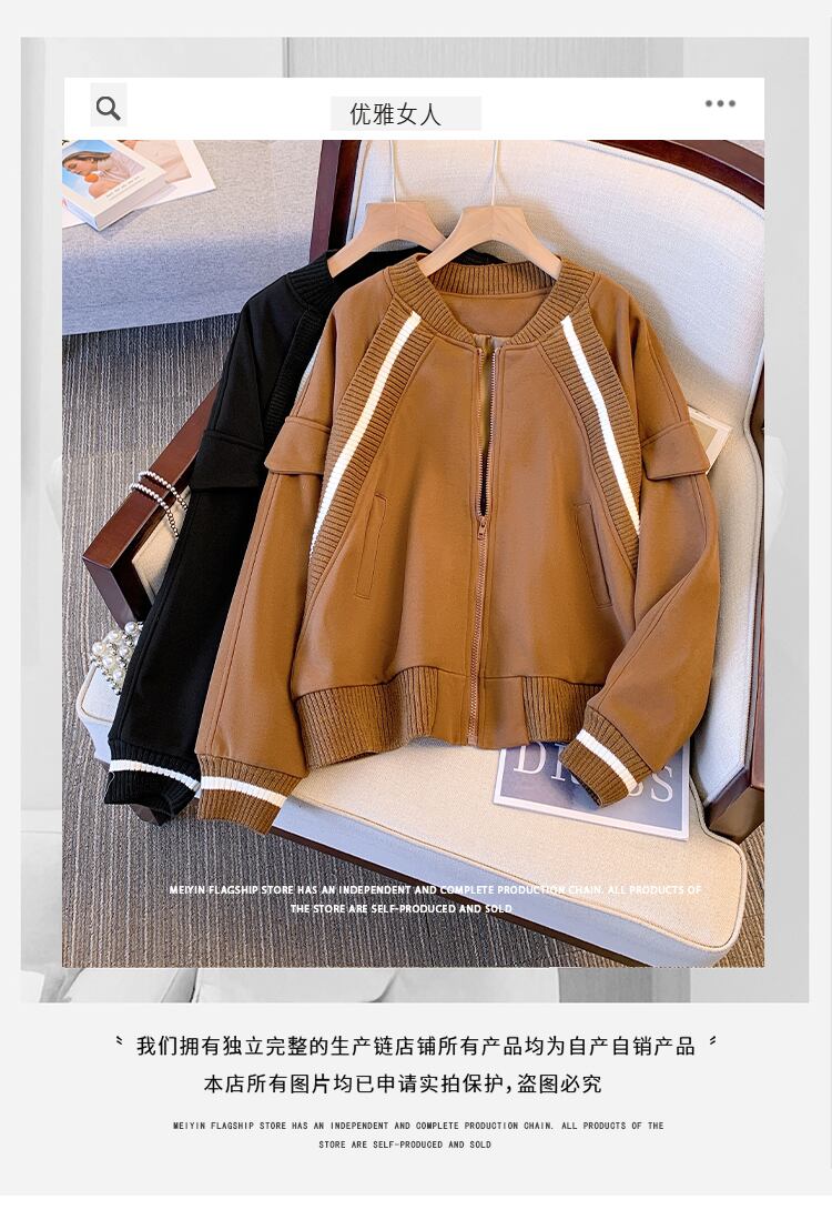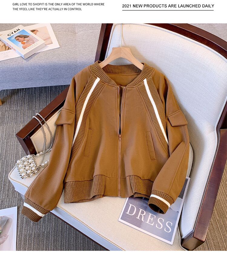 プラスサイズの婦人服 2023 ファットシスター春の新しいスタンドカラーニットスプライシングショートコートニッチファッション野球 unim 女性 大きめサイズ スプリング 春物 8884157147481336
