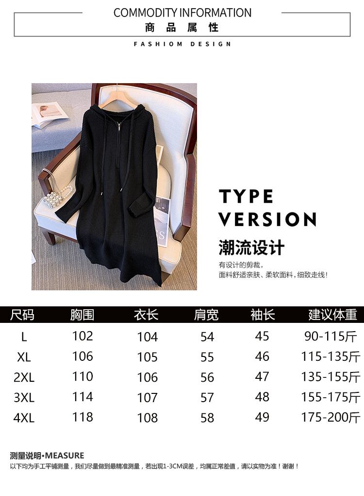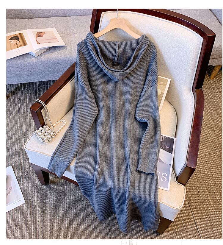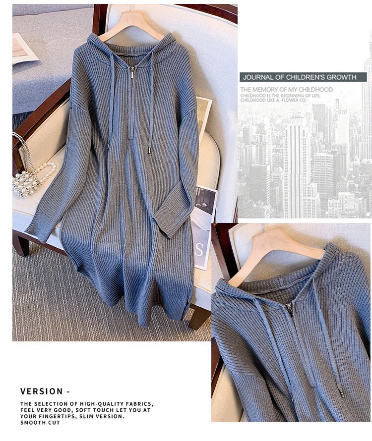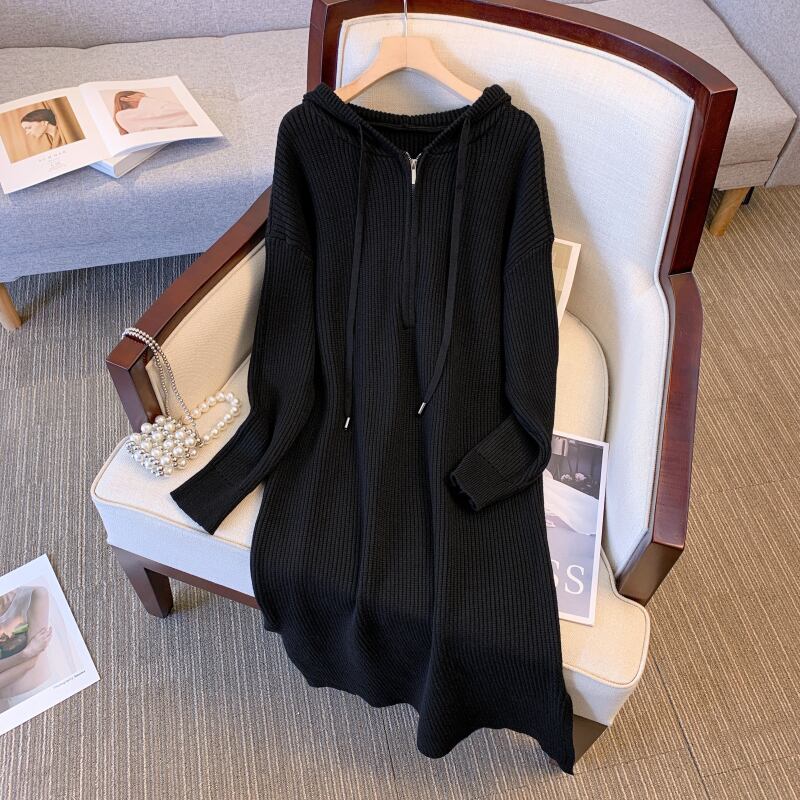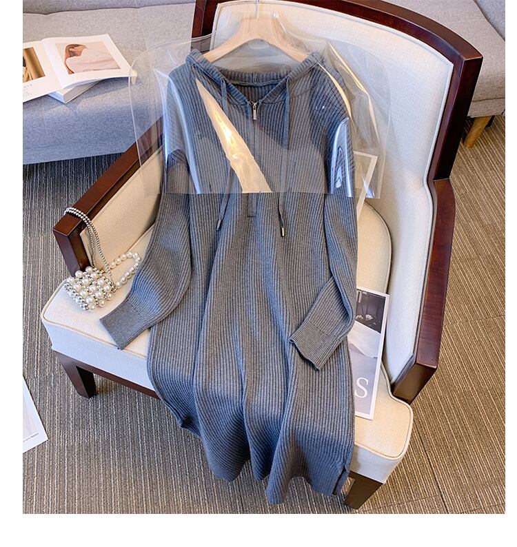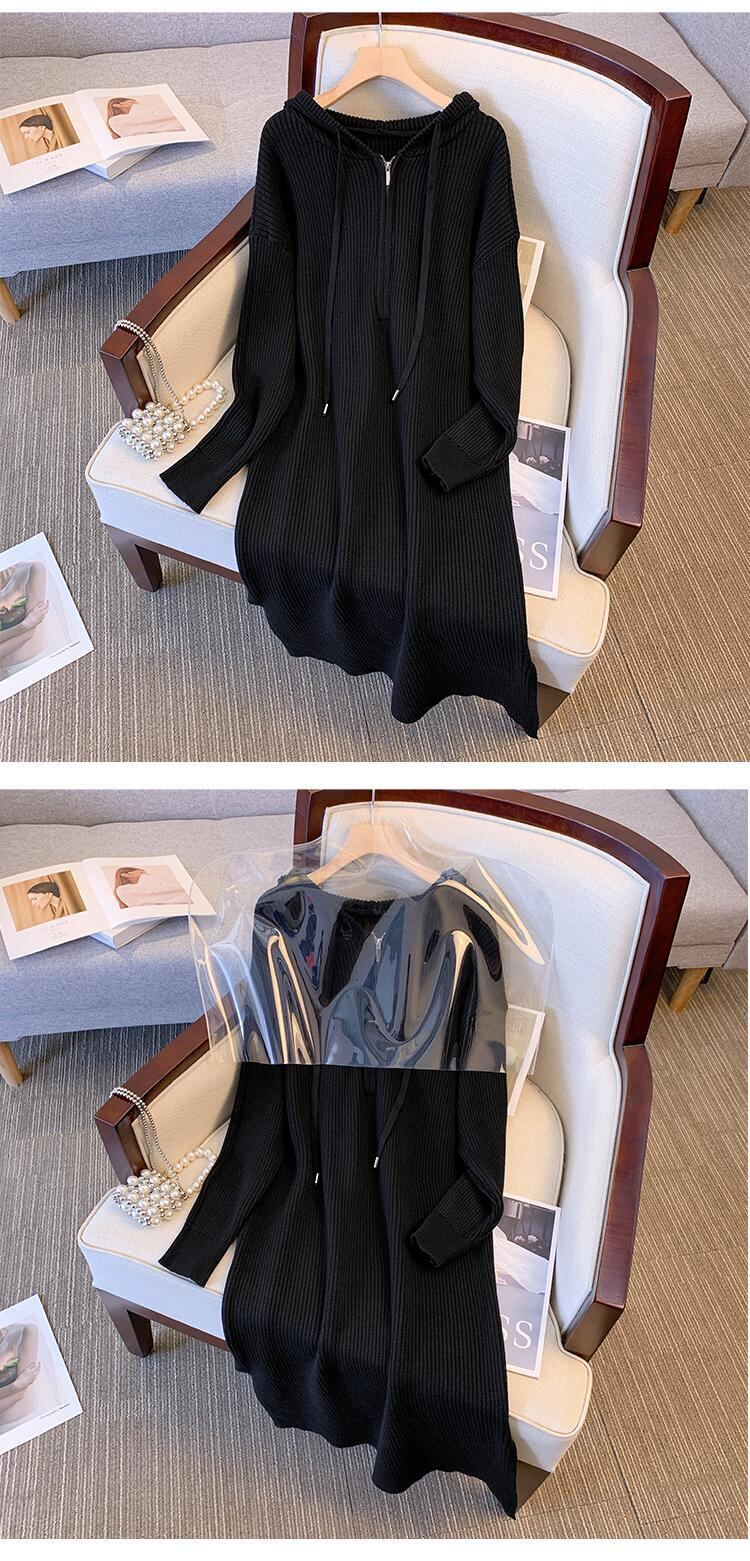 プラスサイズの婦人服 2023 脂肪姉妹春の新肥厚スリットフード付きジッパー緩いニットドレス女性 大きめサイズ スプリング 春物 8884179990603854