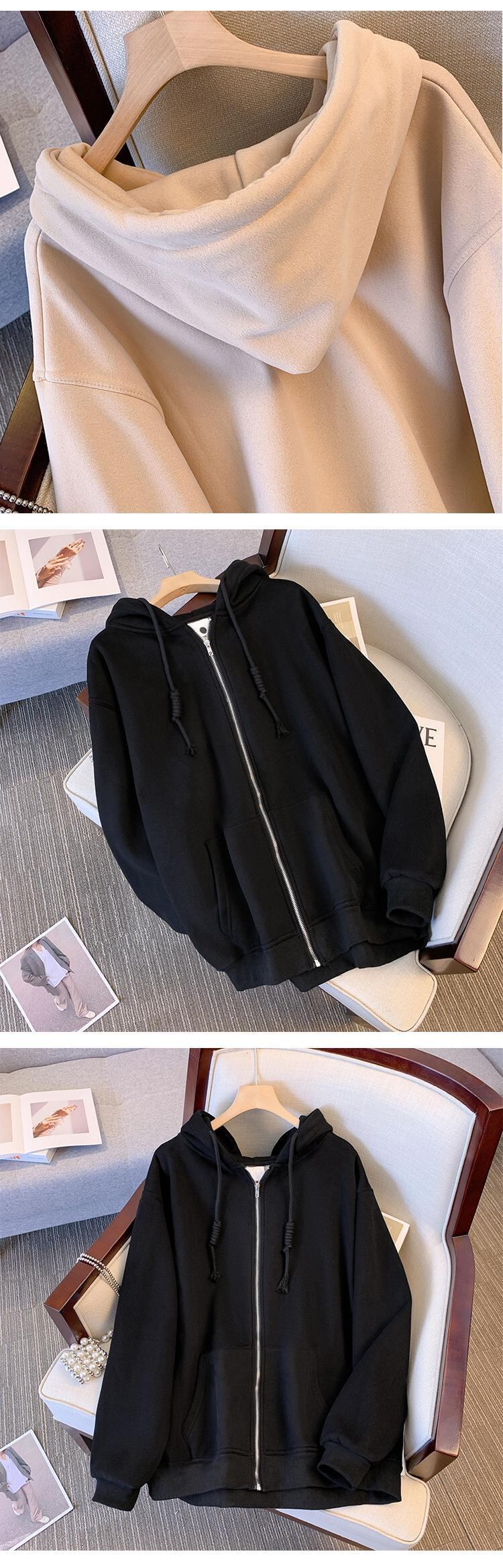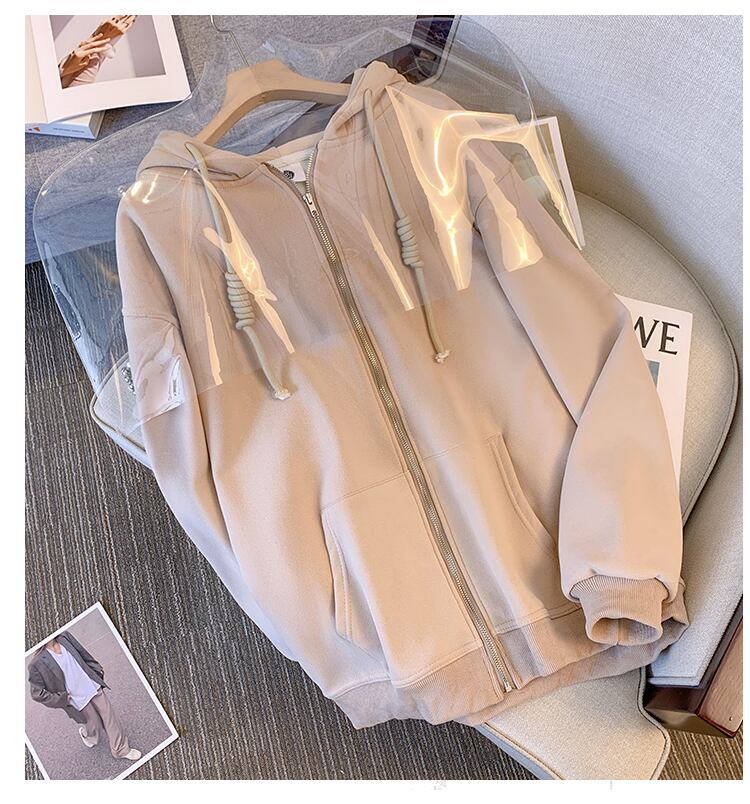 プラスサイズの婦人服 2023 ファットシスター春の新しいスタイルのセータープラスベルベット肥厚緩いカーディガンフード付きジャケット 大きめサイズ スプリング 春物 8884165435869780