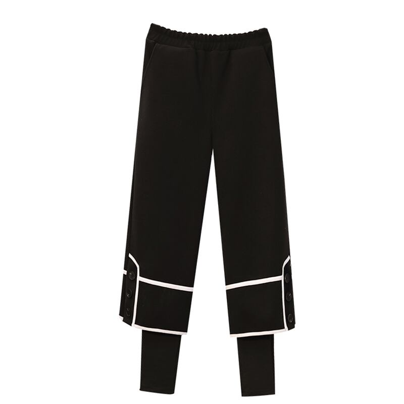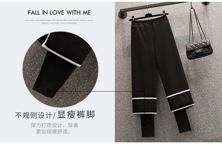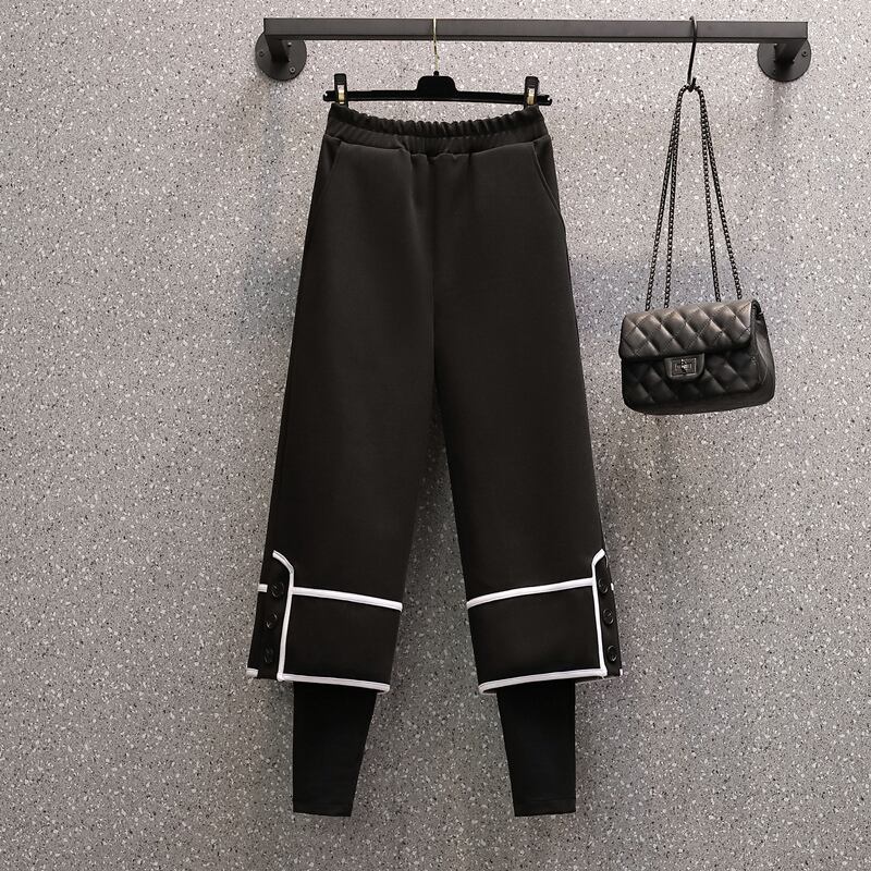 大きいサイズの婦人服 2023 トレンディな女性の春の新しい太った姉妹ファッション オールマッチ痩身フェイク ツーピース カジュアル プラス ベルベット ワイドレッグ パンツ 大きめサイズ スプリング 春物 8884173158722720