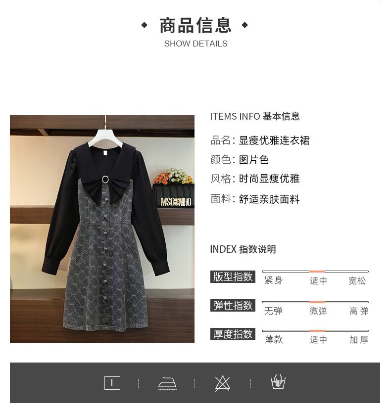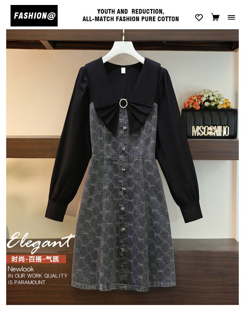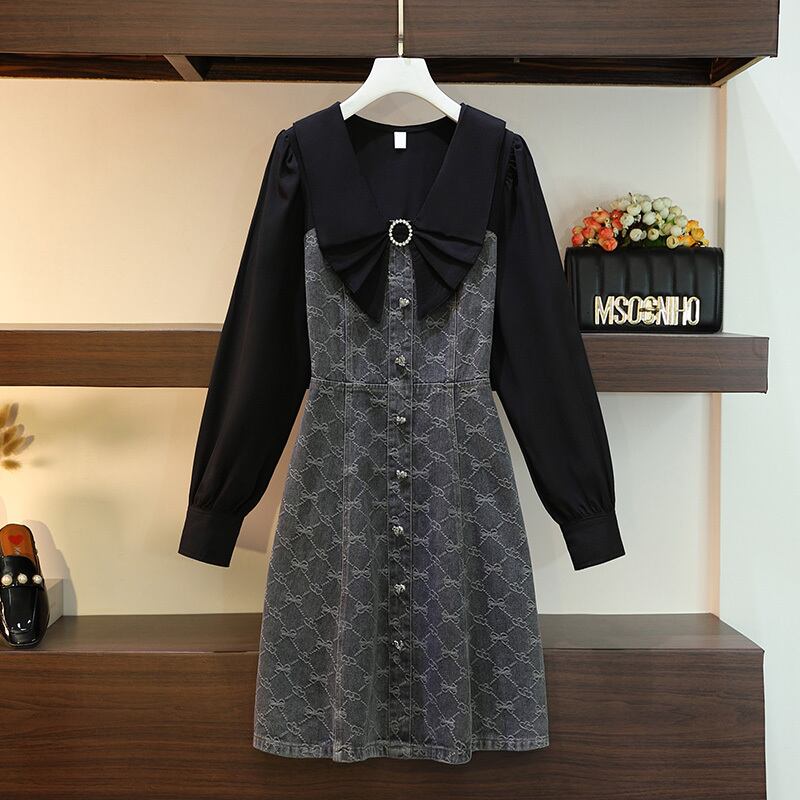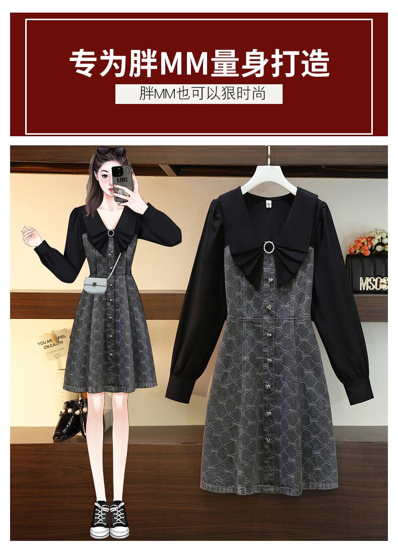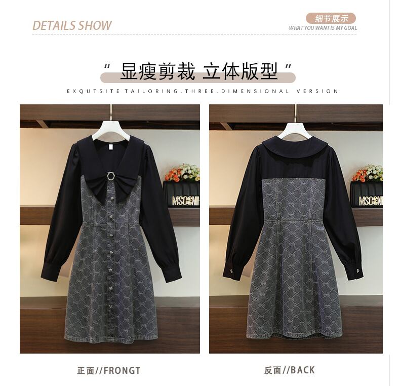 プラスサイズの婦人服 2023 脂肪姉妹春新 eign スタイル偽のツーピーススリム v ネック長袖ドレス女性 ロング 大きめサイズ スプリング 春物 Vネック 8884137778233089