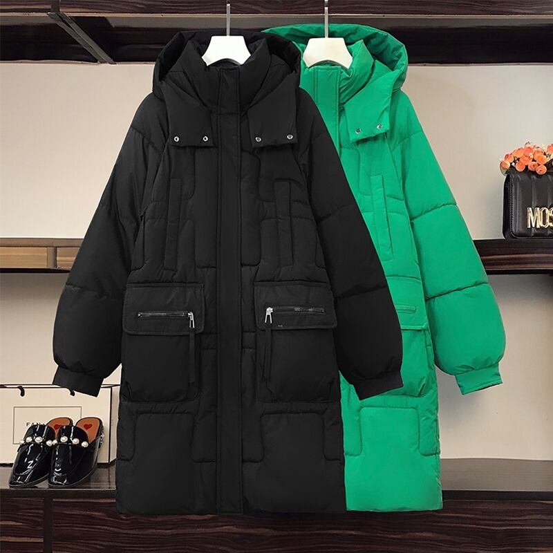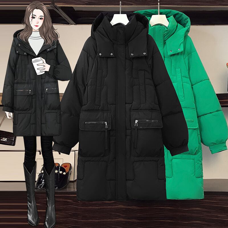 ミッドレングス フード付き 2022 冬の新しい大きいサイズのファッション オールマッチ暖かい厚手のダウン コットン コート女性のバージョン 大きめサイズ ウィンター 冬物 8884159948730663