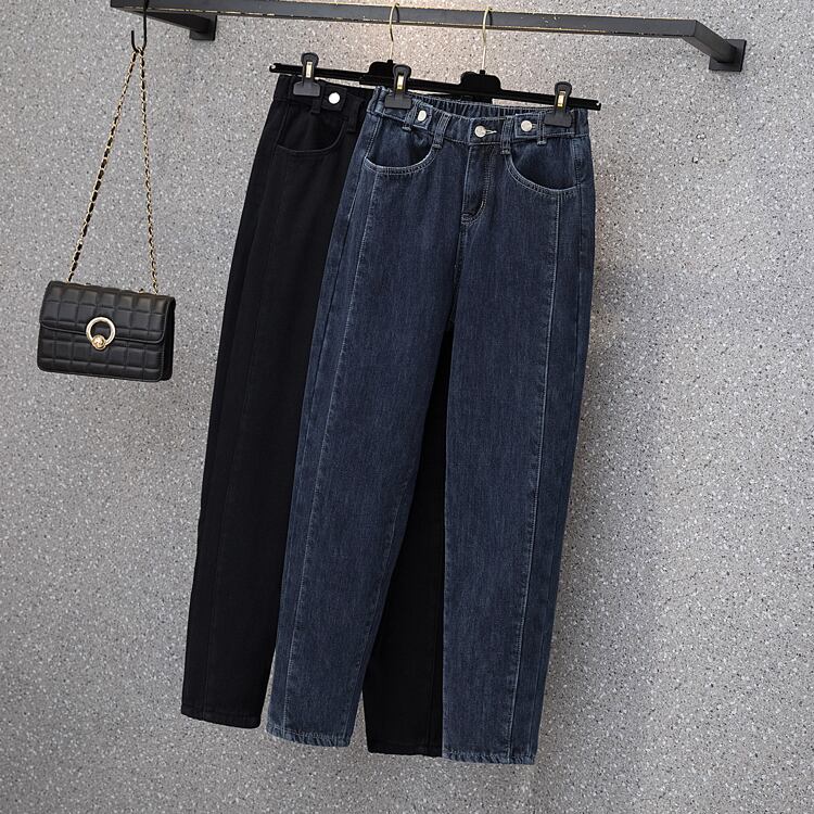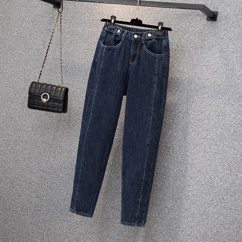 プラスサイズの婦人服2023春の新しいスタイルのファットシスタールーズで薄いハイウエストオールマッチデニム年齢を減らすハーレムパンツ ハイウェスト 大きめサイズ スプリング 春物 8884195788419415