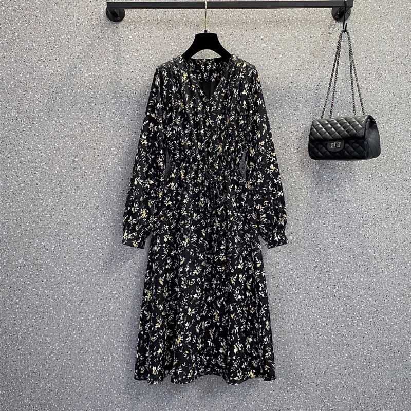 プラスサイズの婦人服 2023 春の新しいファットシスターフレンチヘップバーンスタイルのデザインの花柄のシックなドレスの女性 大きめサイズ スプリング 春物 8884127309949474