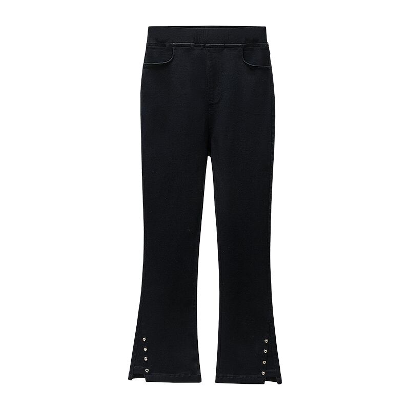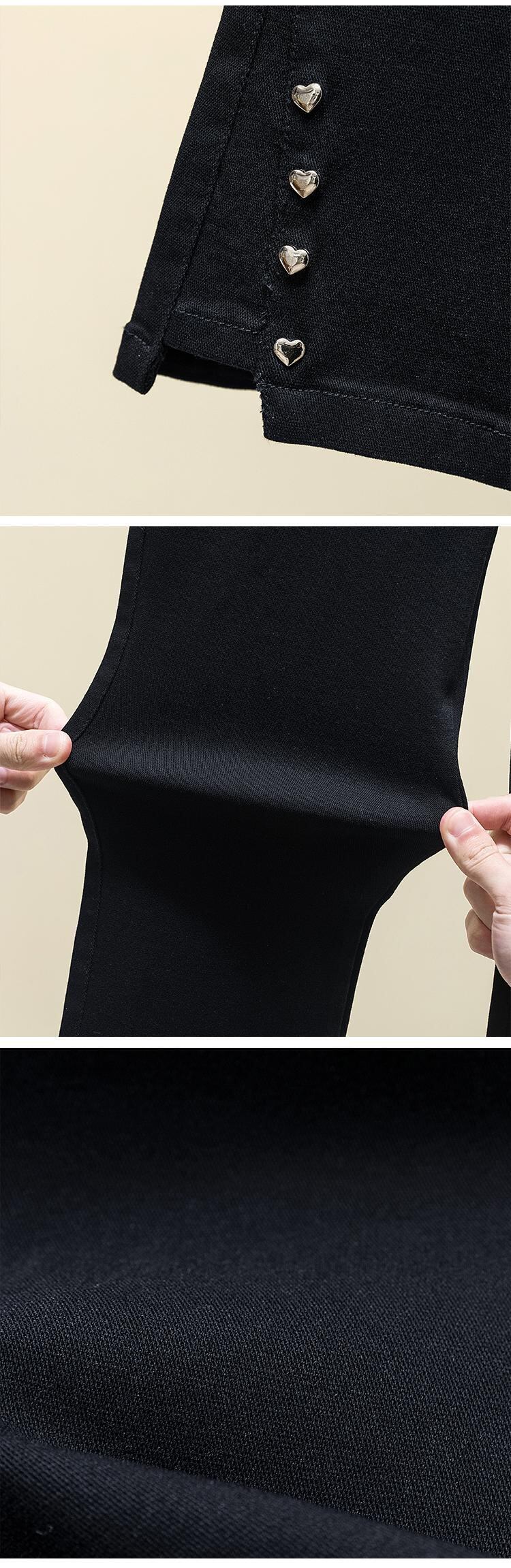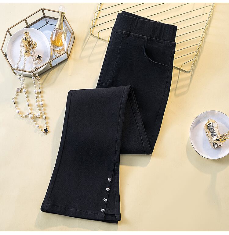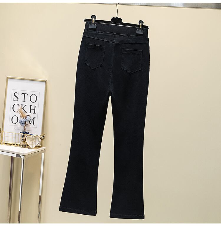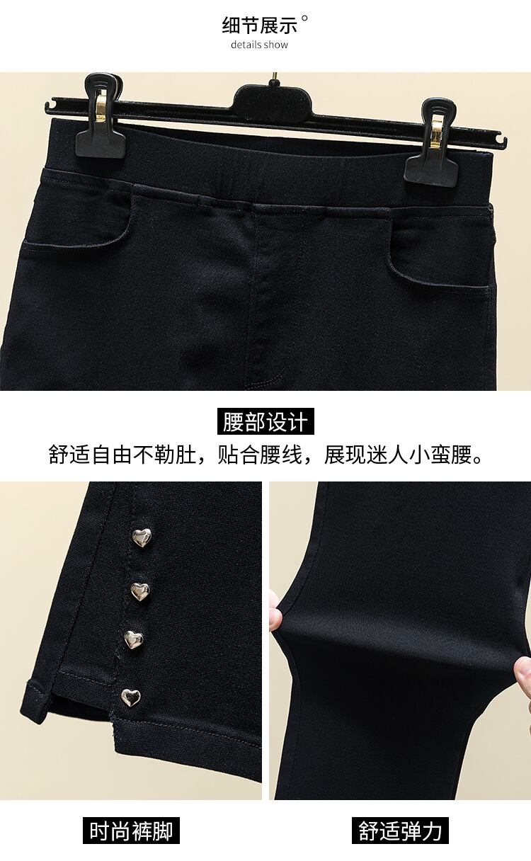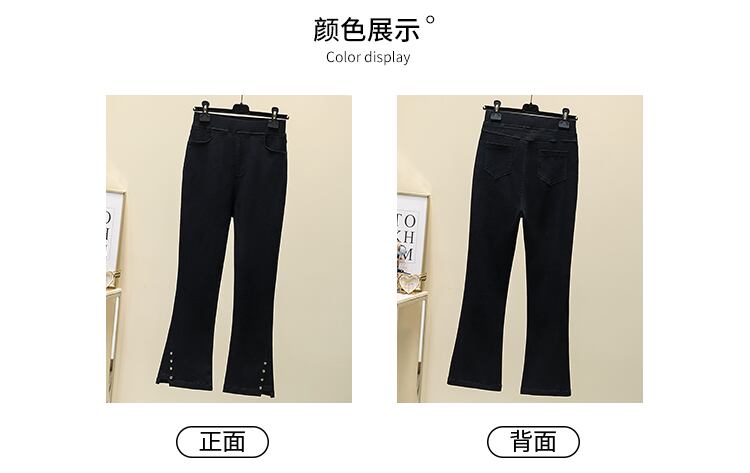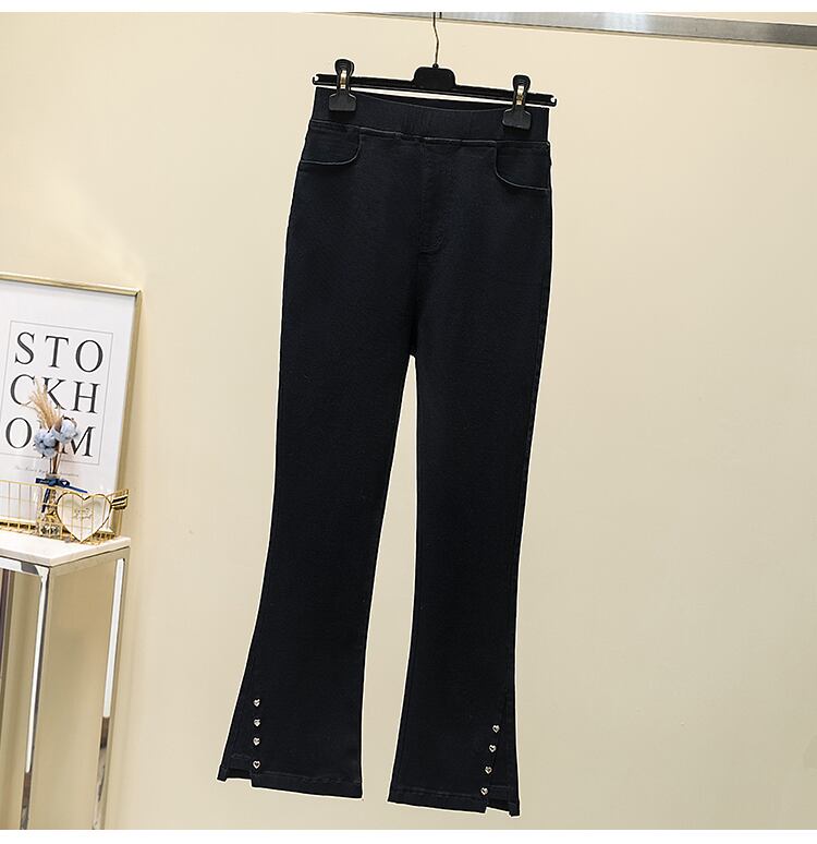 プラスサイズの婦人服 2023 ファットシスター春の新作ラブブレストマイクロフレア九点パンツハイウエストスリットカジュアルパンツ ハイウェスト 大きめサイズ スプリング 春物 8884189474380186